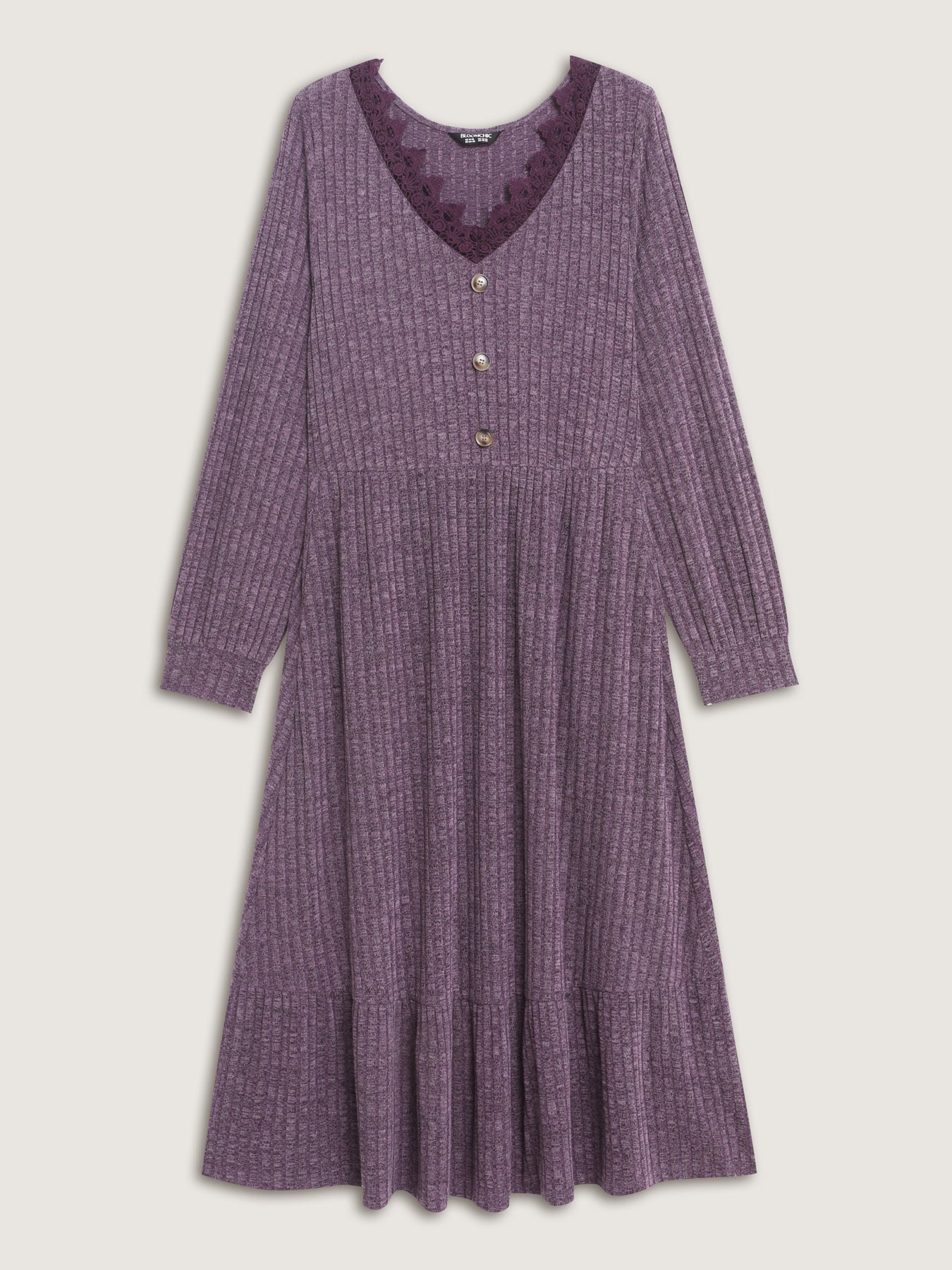 Stretchy Textured Lace Trim Midi Dress