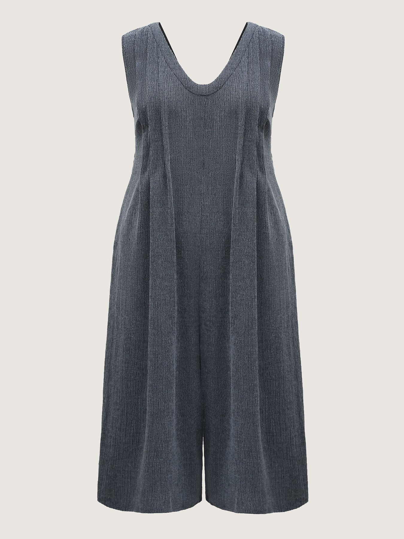 Stretchy Textured Pleated Wide-Leg Jumpsuit