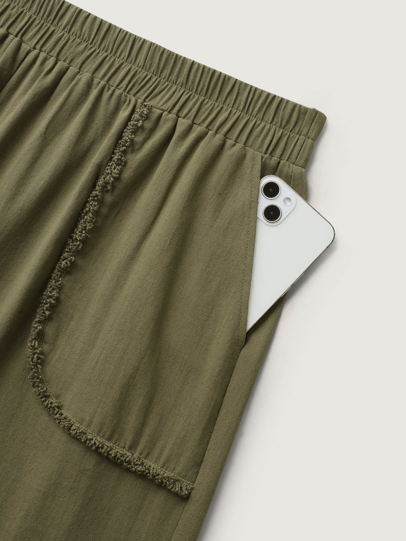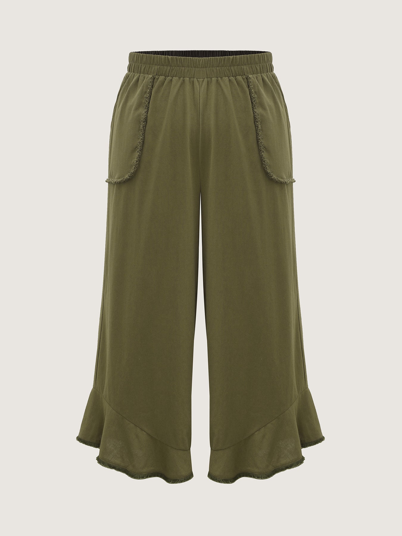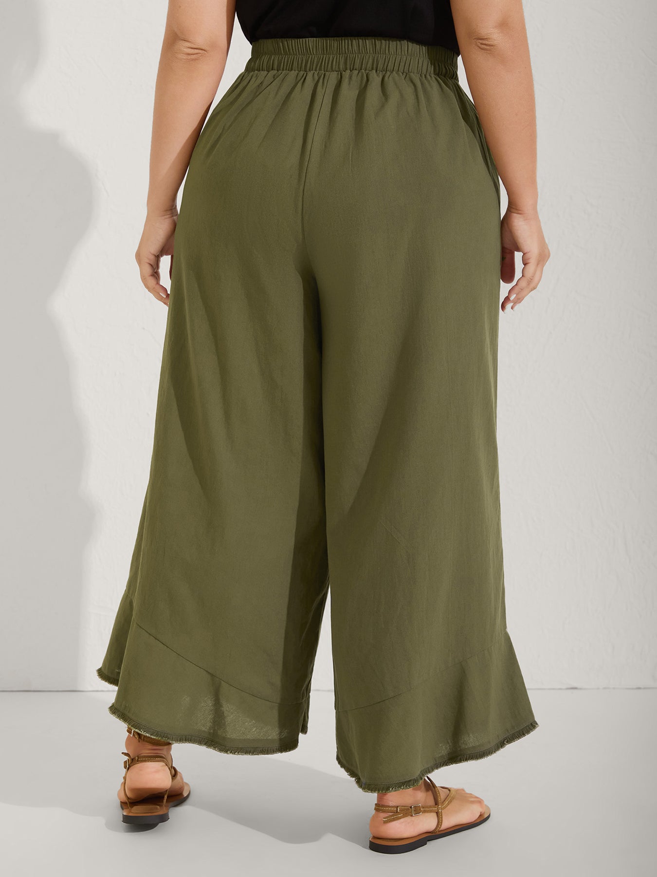 Stretchy Waist Frayed Hem Wide-Leg Pants