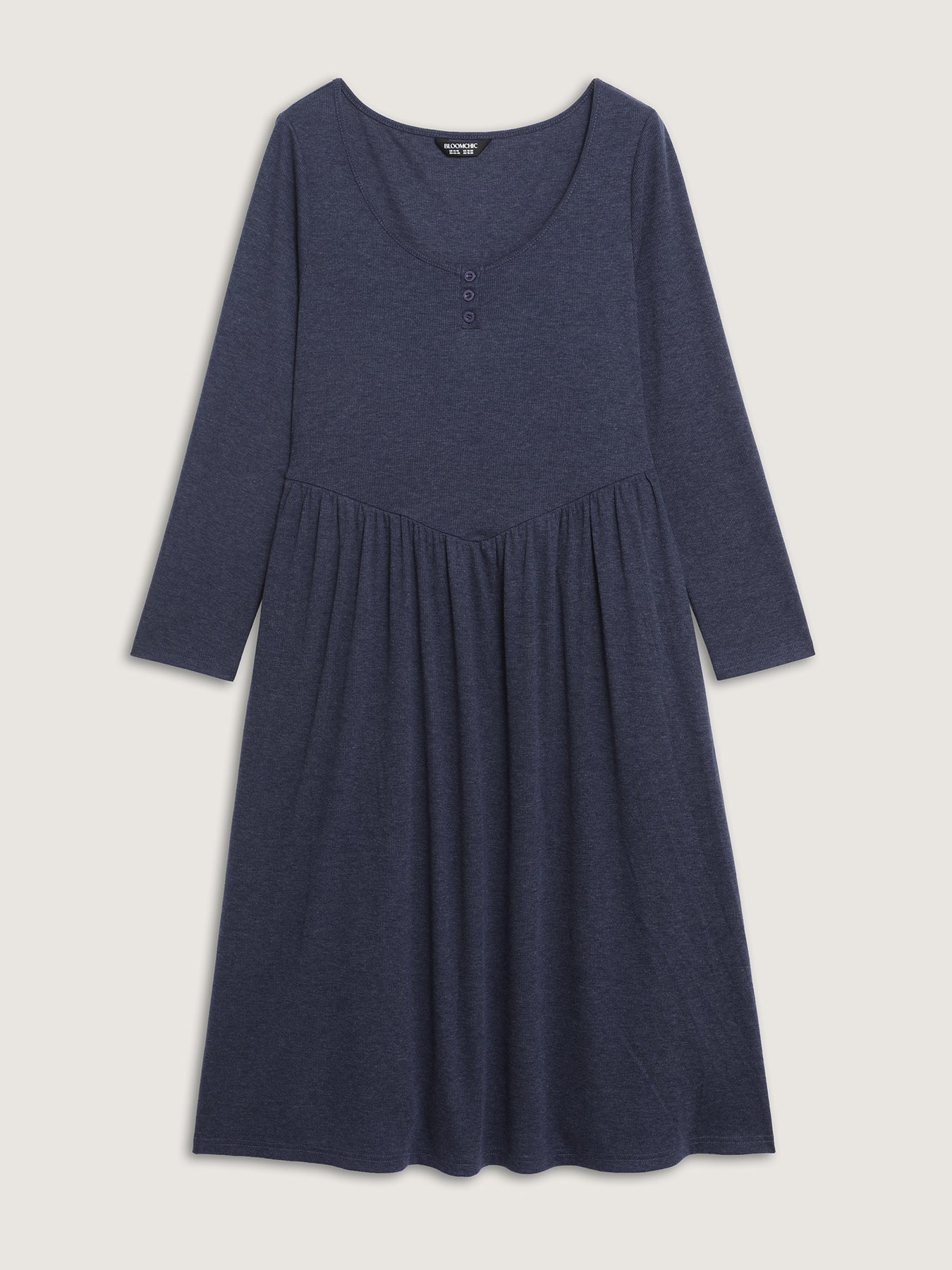 Stretchy Waist Scoop Neck Knit Midi Dress
