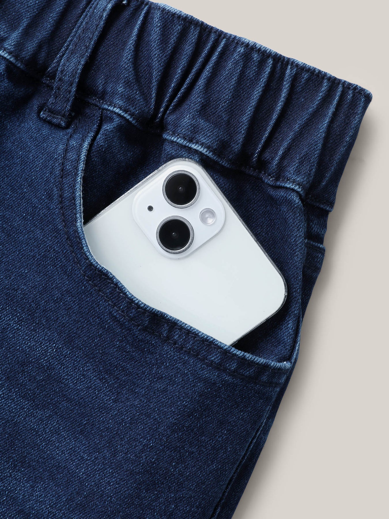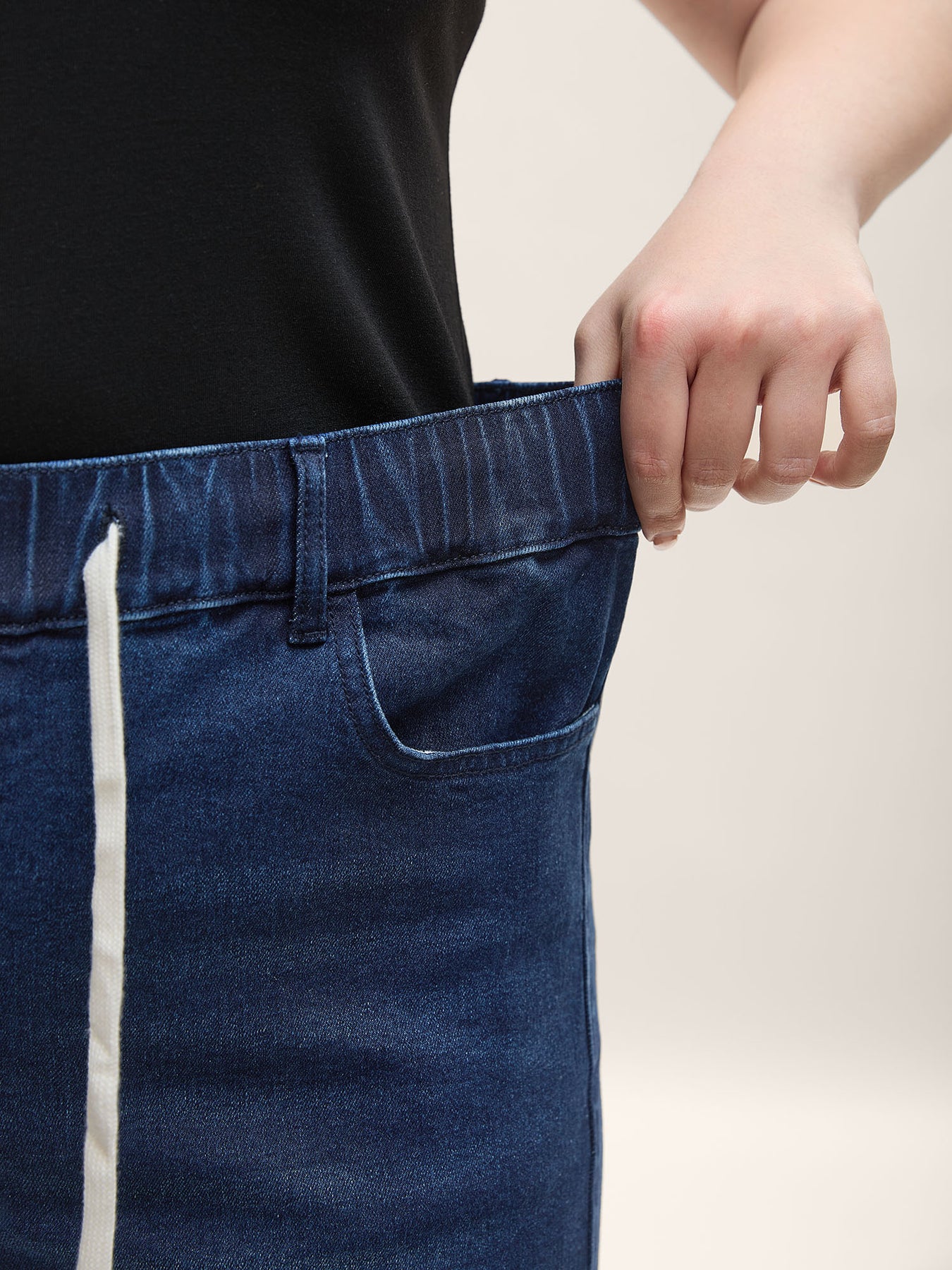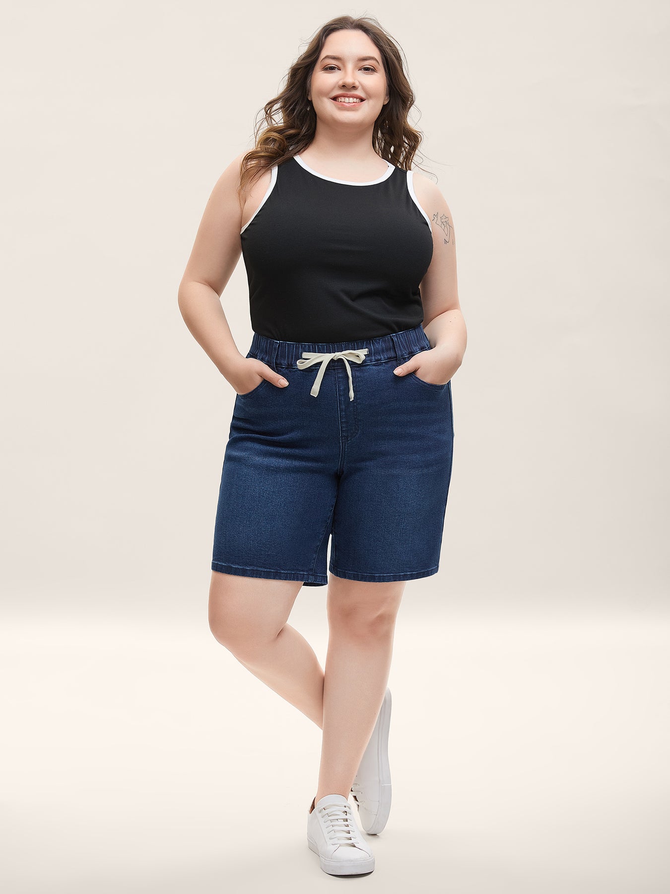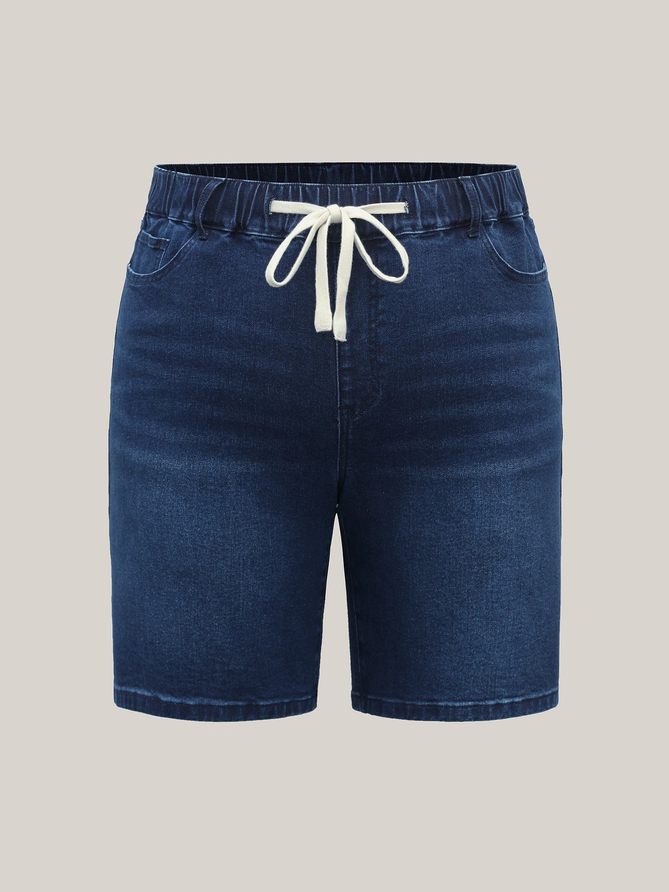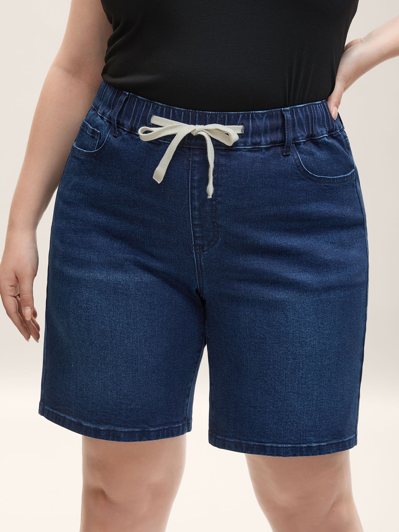 Stretchy Waist Tie Straight-Leg Denim Shorts