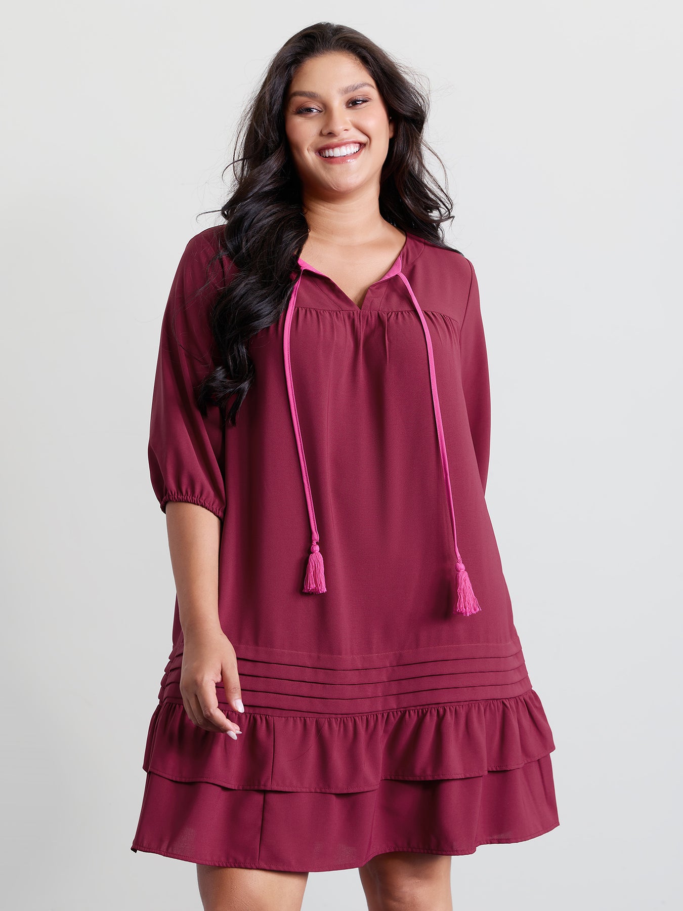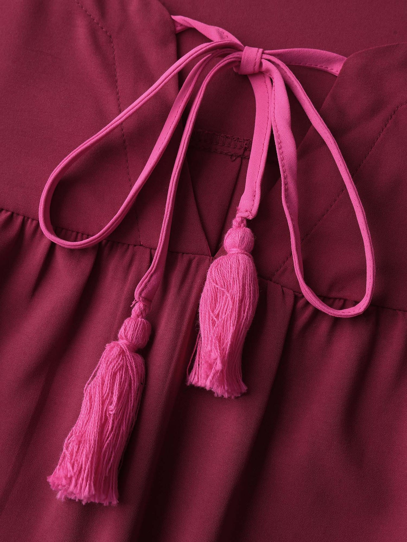 Stretchy Waist Tiered Tie Knee-Length Dress