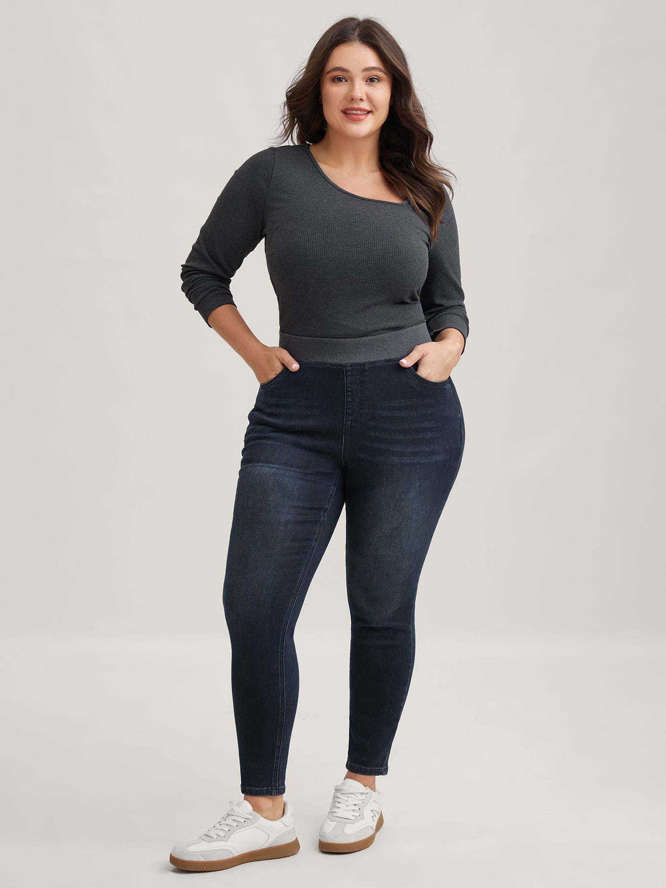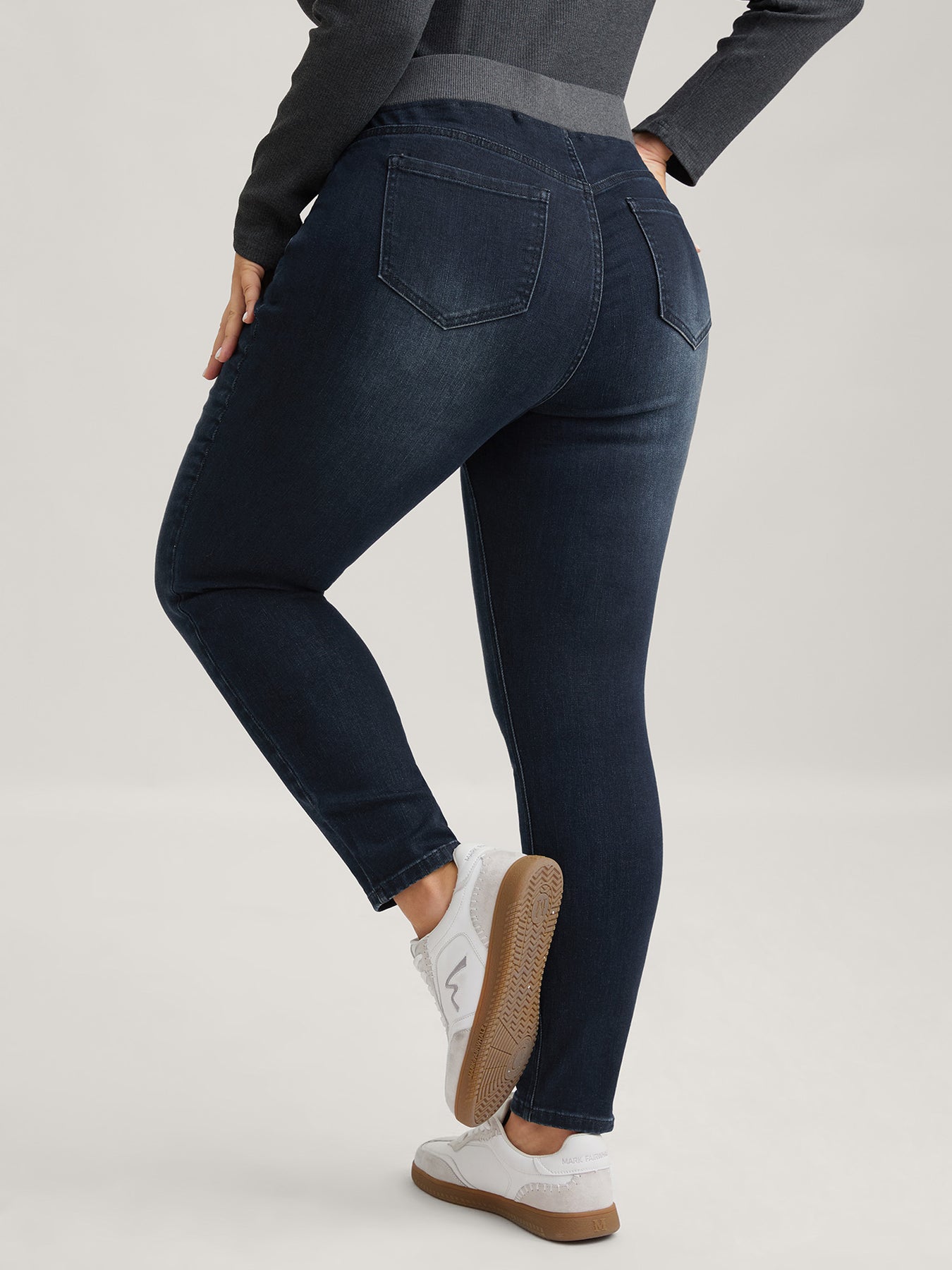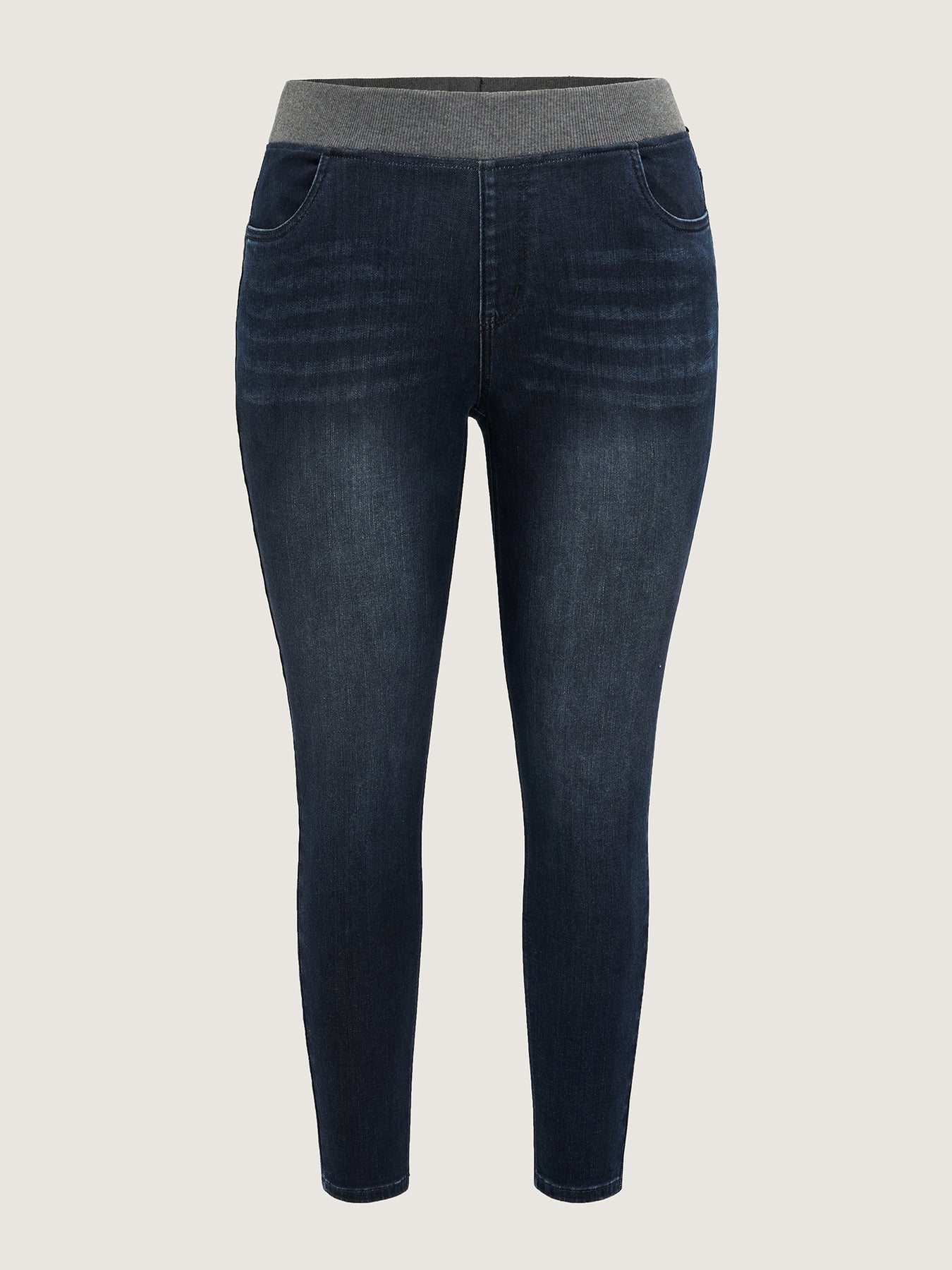 Stretchy Whiskered Waist Skinny Knit Jeans