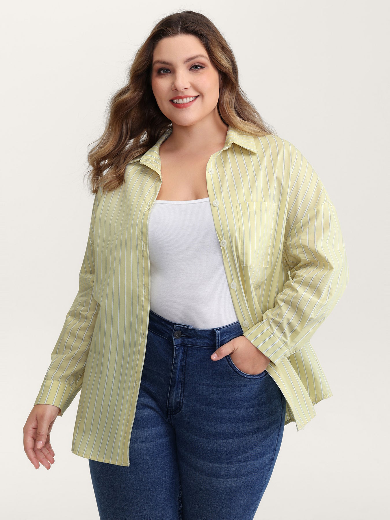 Stripe Button-Down Pocket Blouse