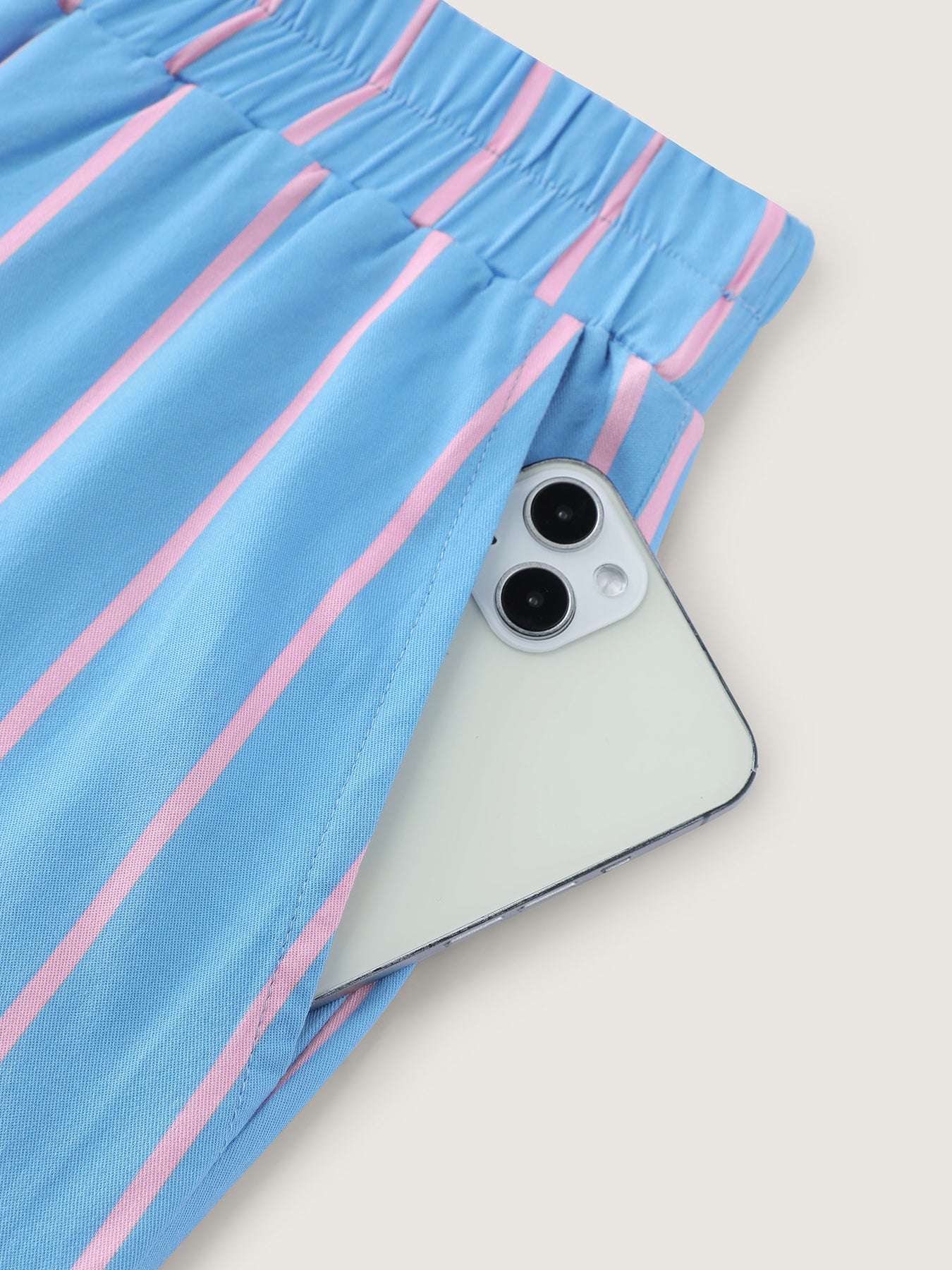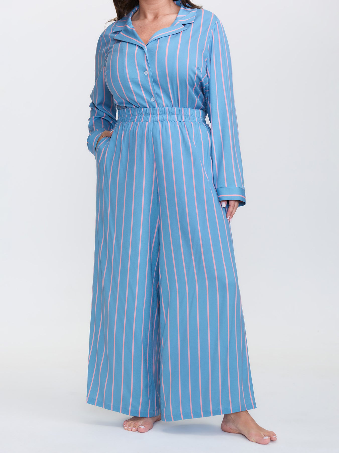 Stripe Print Pockets Sleepwear Set