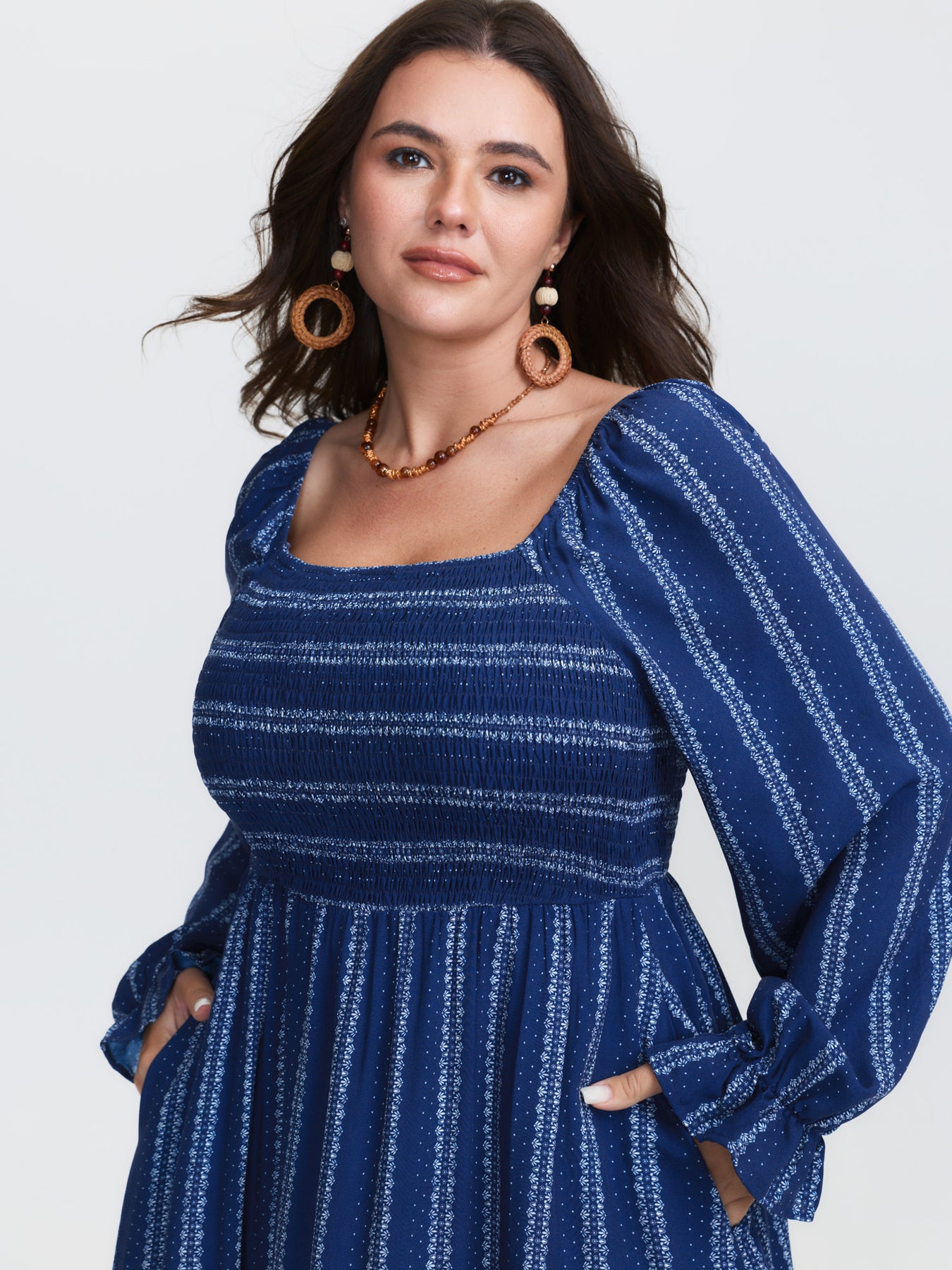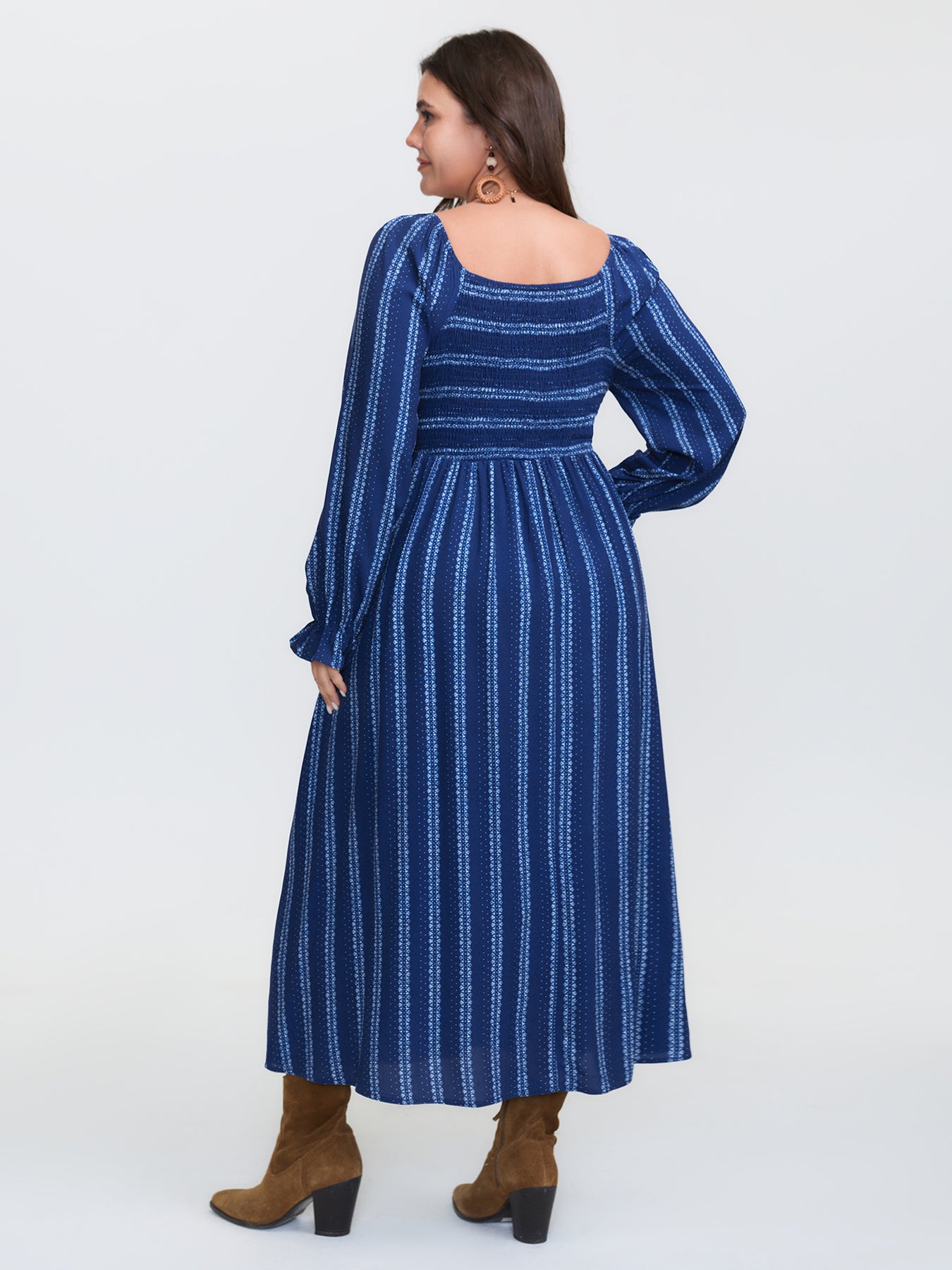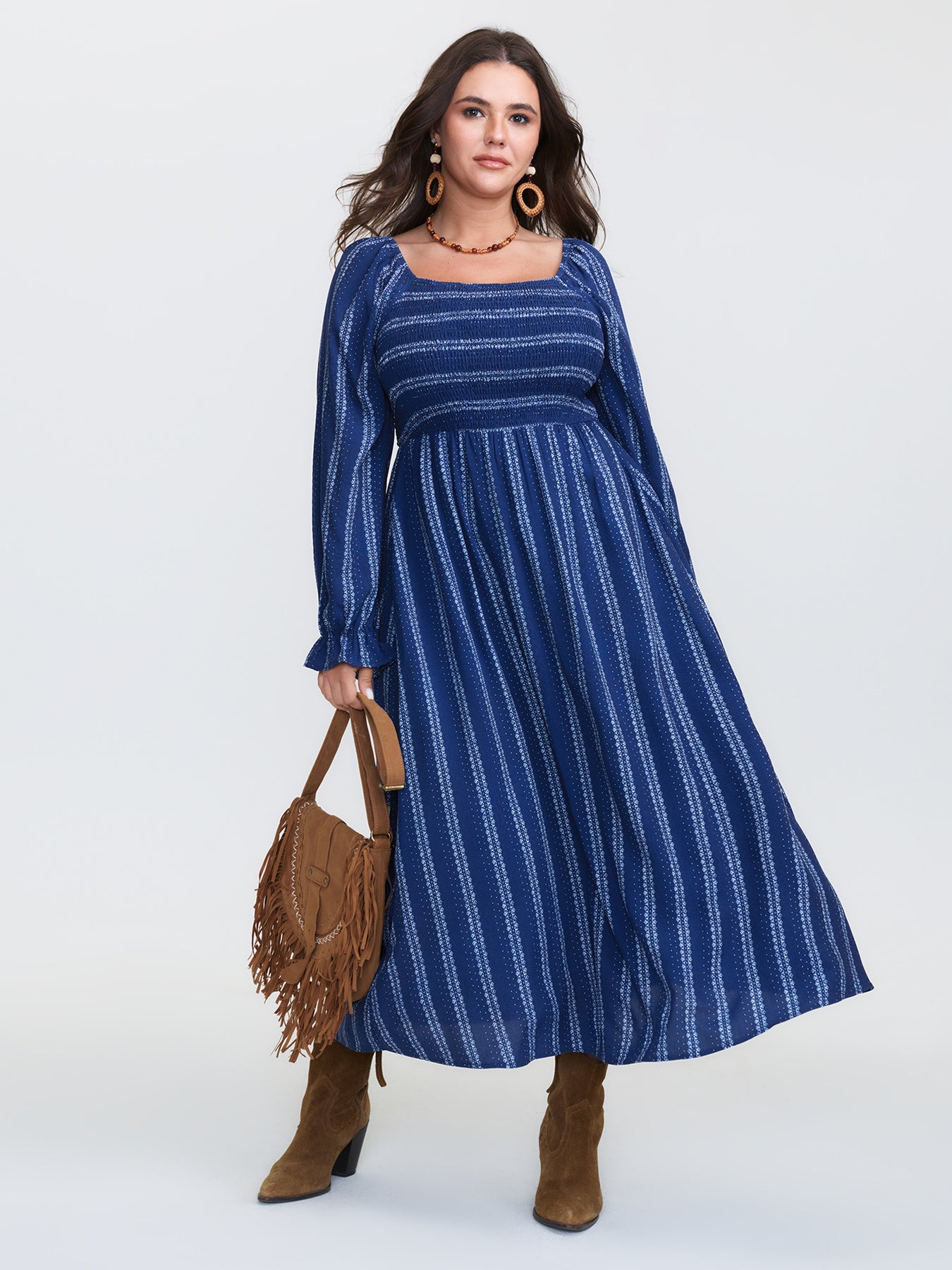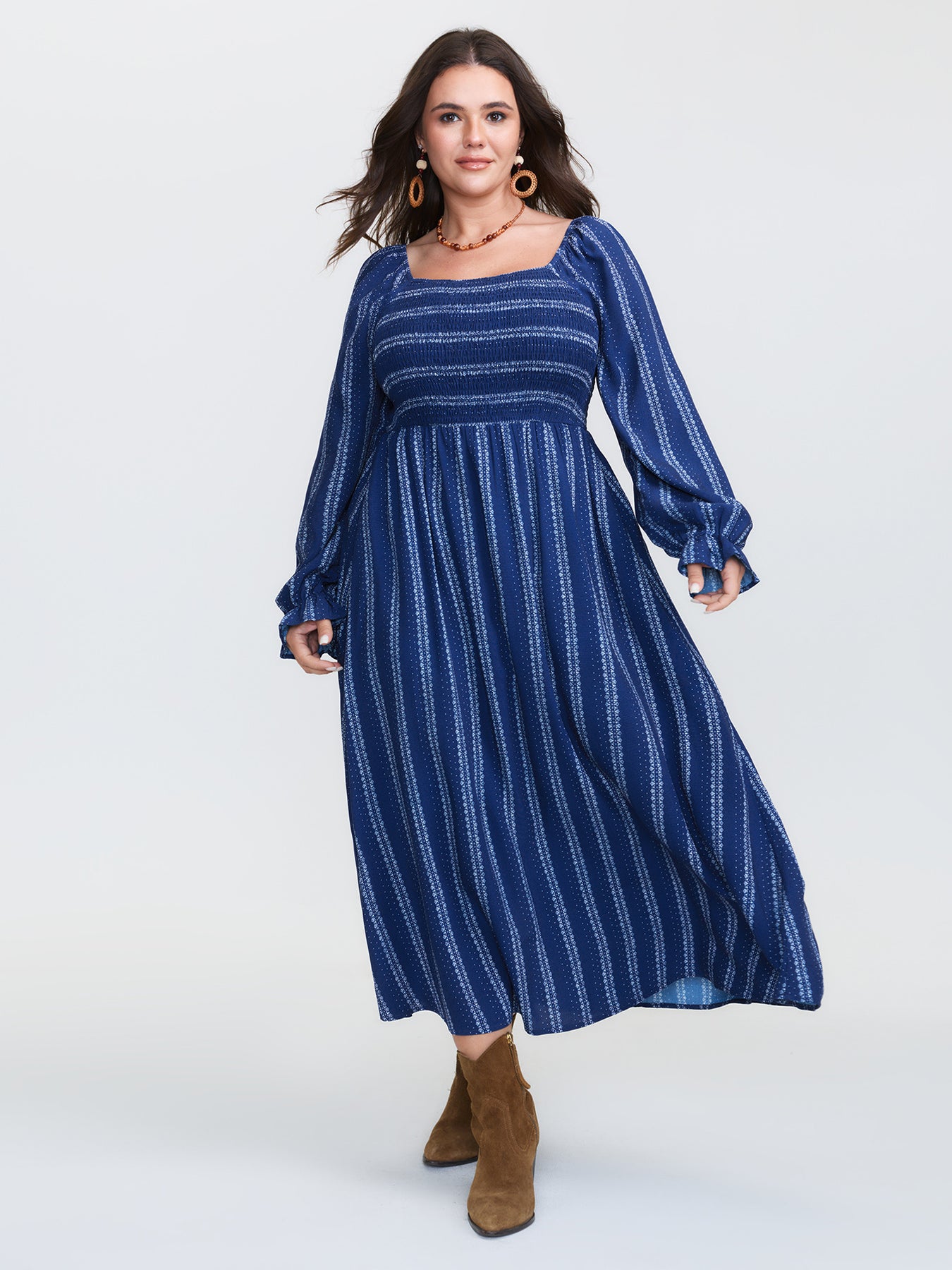 Stripe Ruffled Cuff Sleeve Maxi Dress