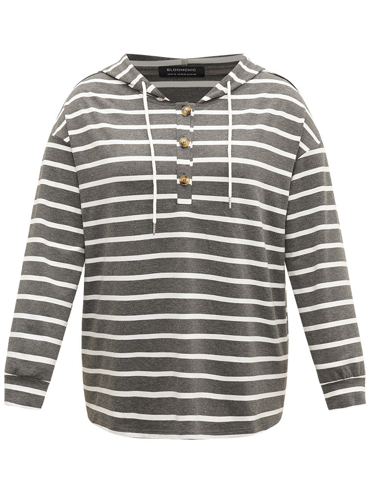 Striped Button Up Hooded Sweatshirt