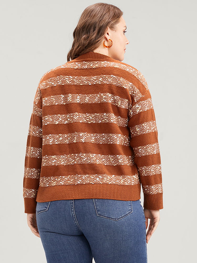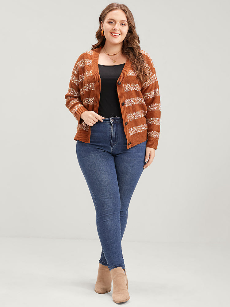 Striped Contrast Ping Pong Yarn Heather Button Front Cardigan