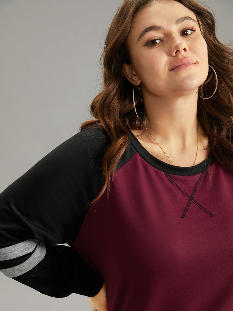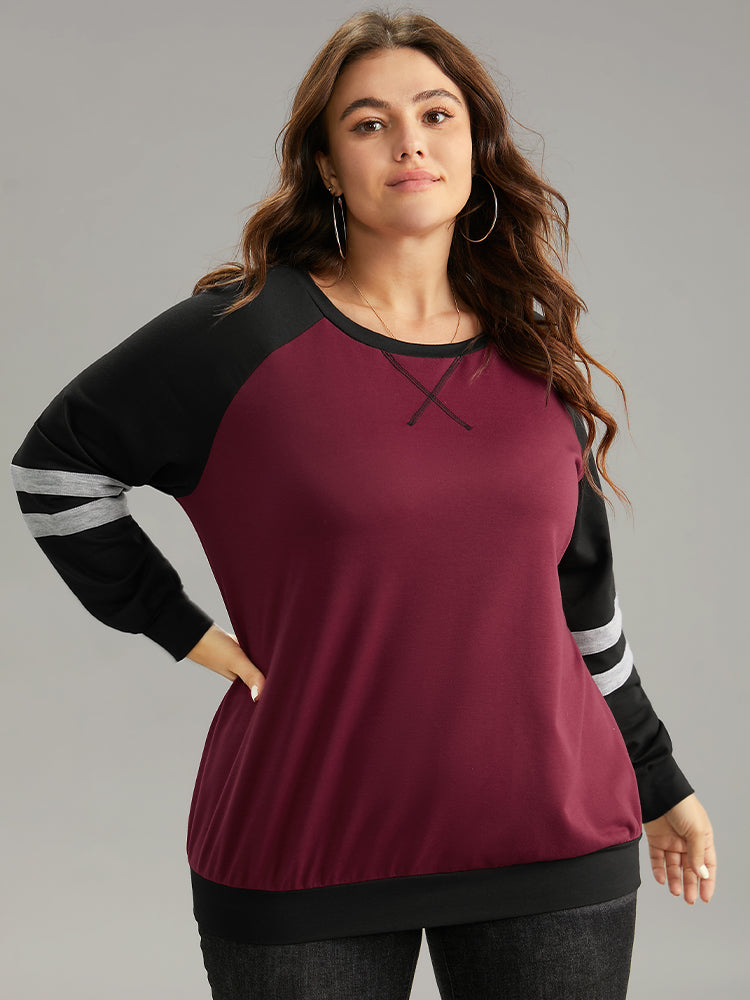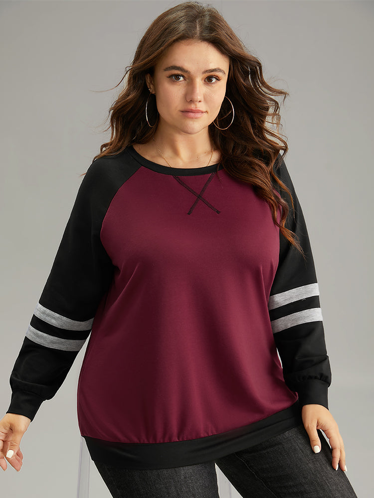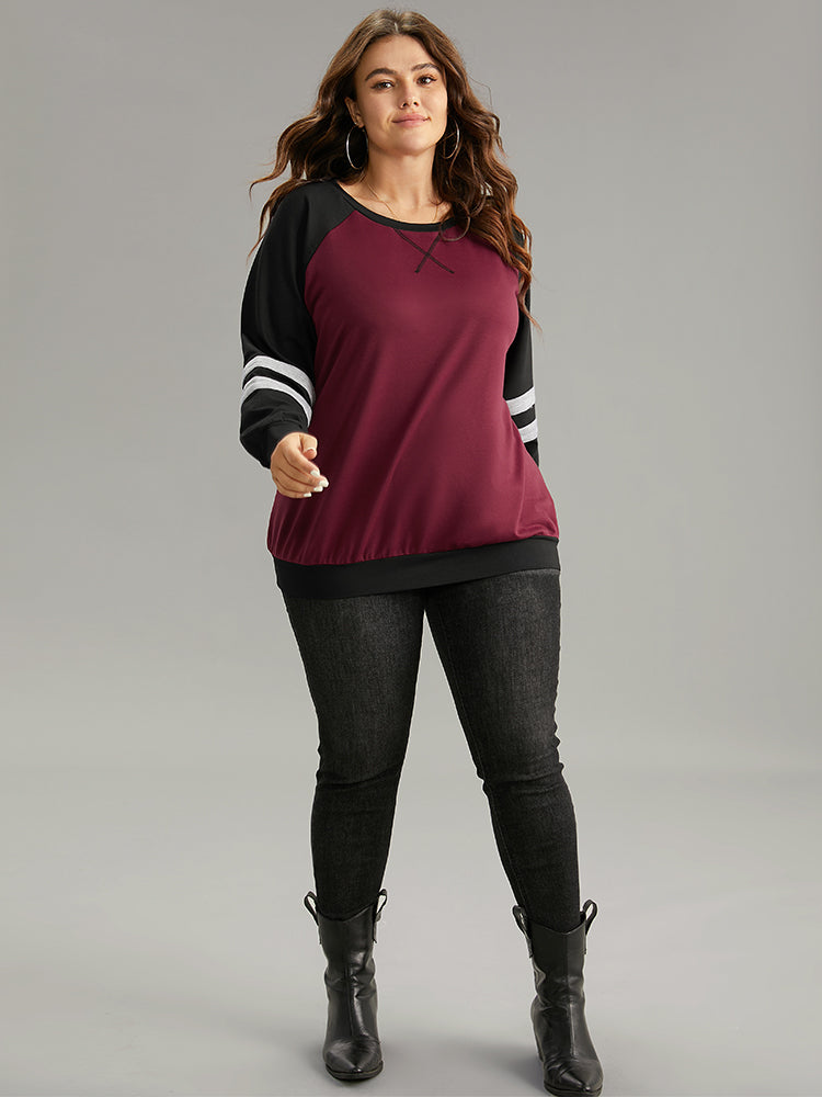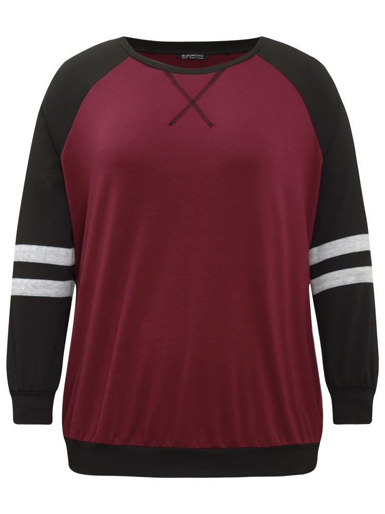 Striped Contrast Raglan Sleeve Stitch Sweatshirt