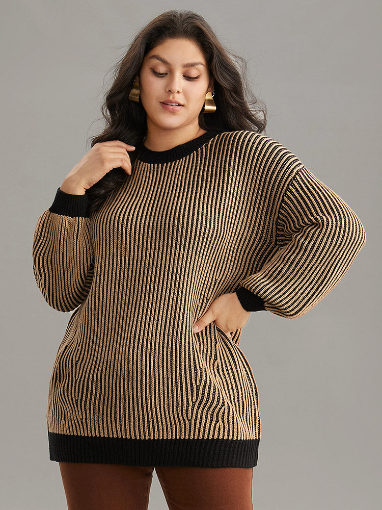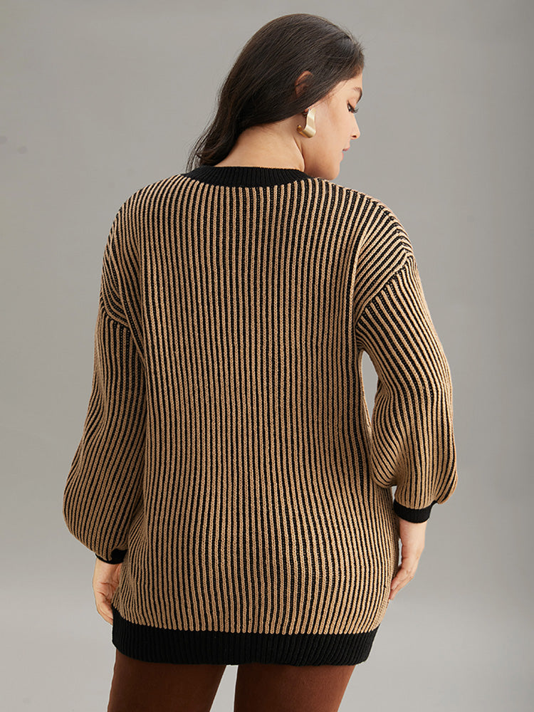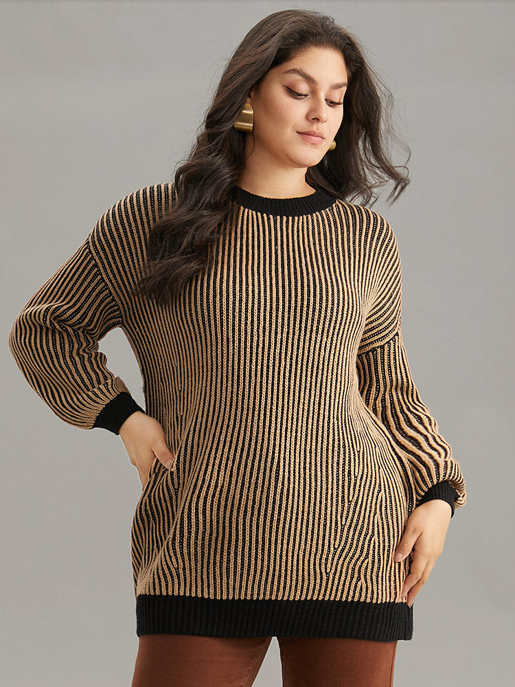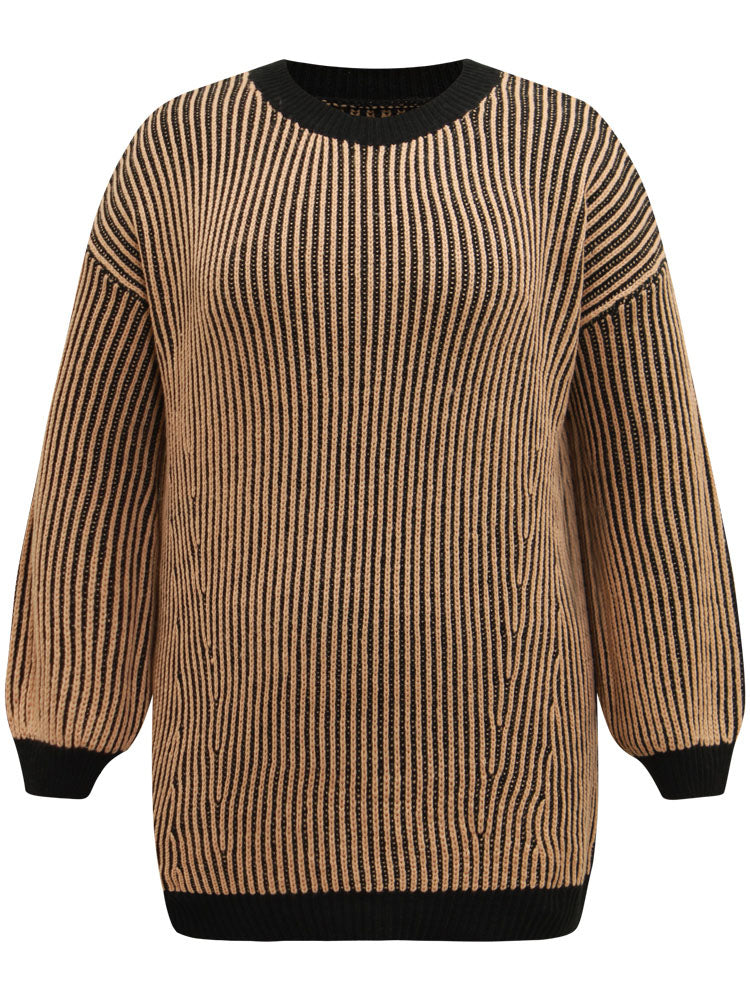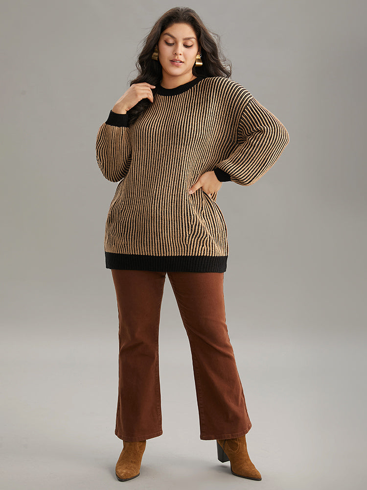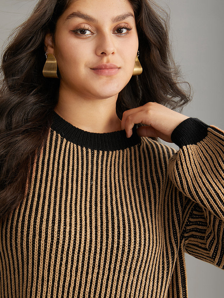 Striped Contrast Round Neck Pullover