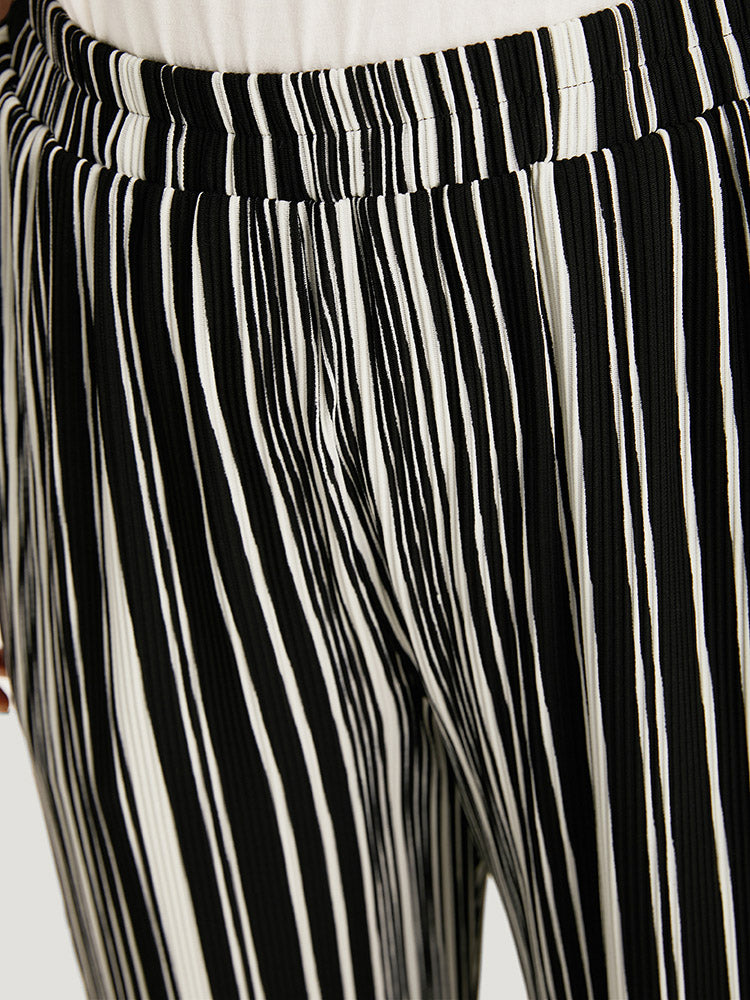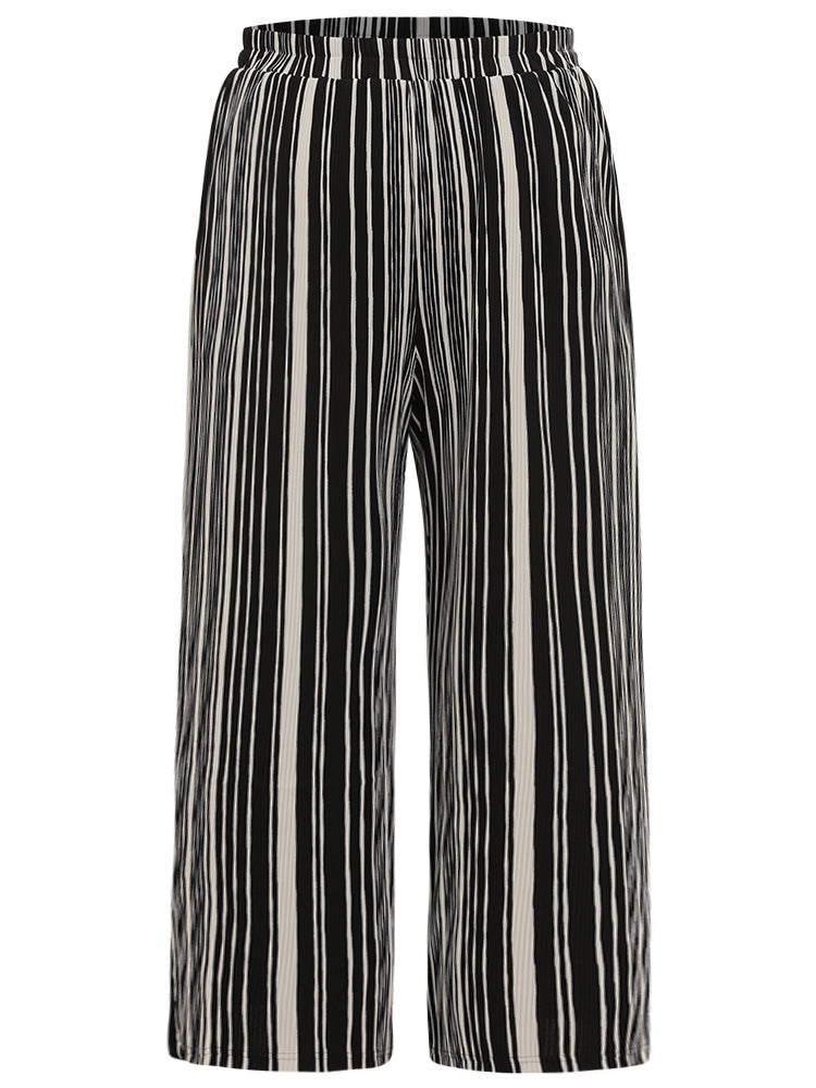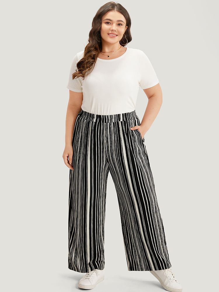 Striped Elastic Waist Pocket Loose Pants