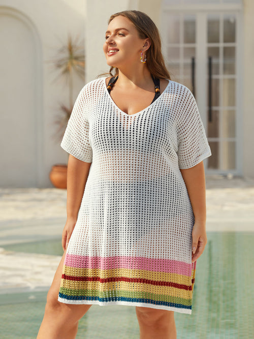 Striped Hem Cut-Out Slit Swim Cover-Up