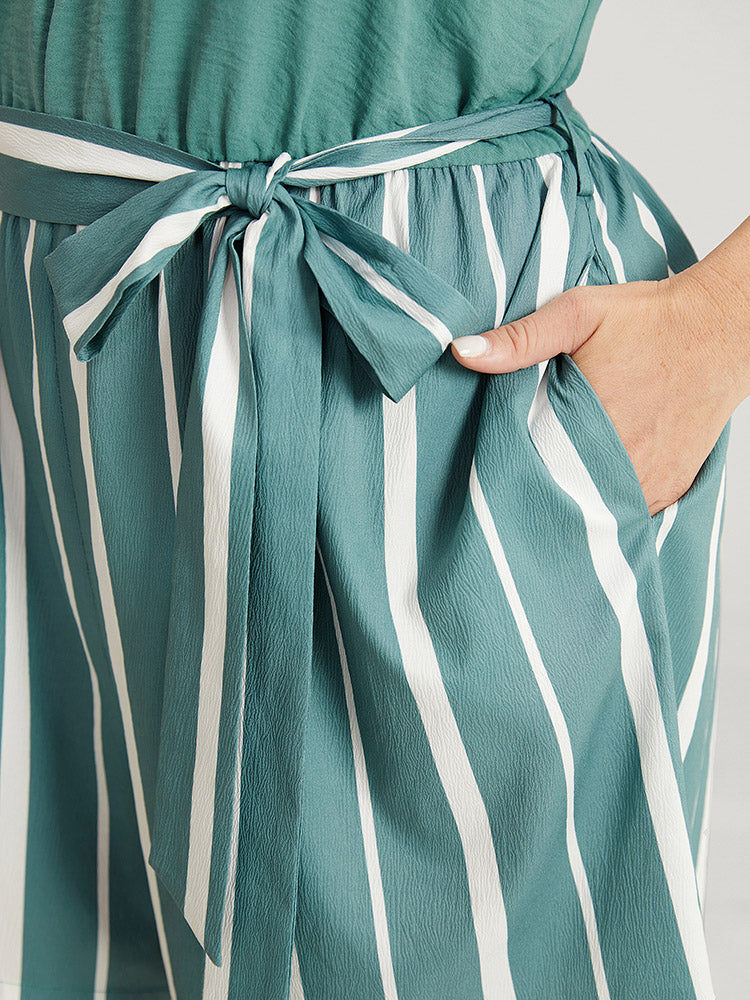 Striped Patchwork Belt Pocket Cami Romper