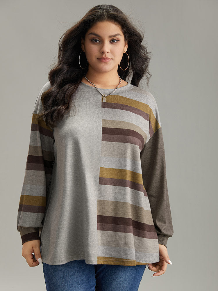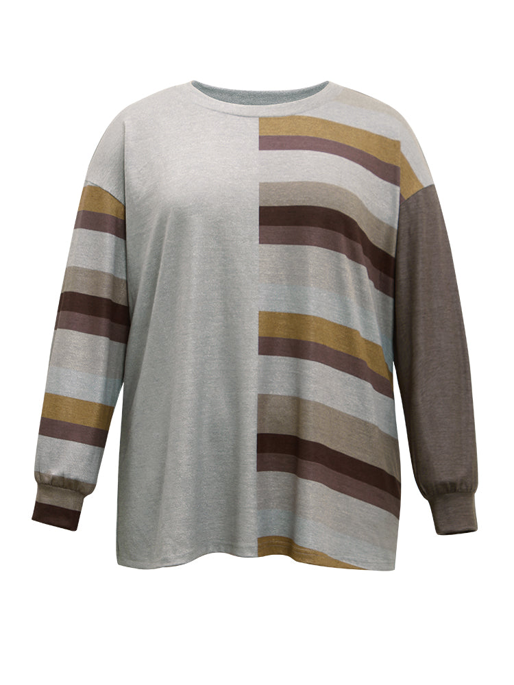 Striped Patchwork Contrast Crew Neck Sweatshirt
