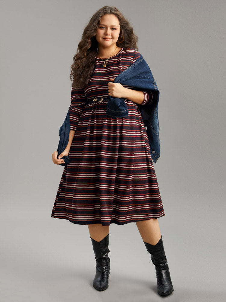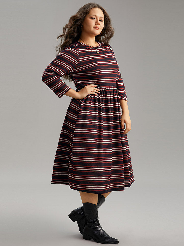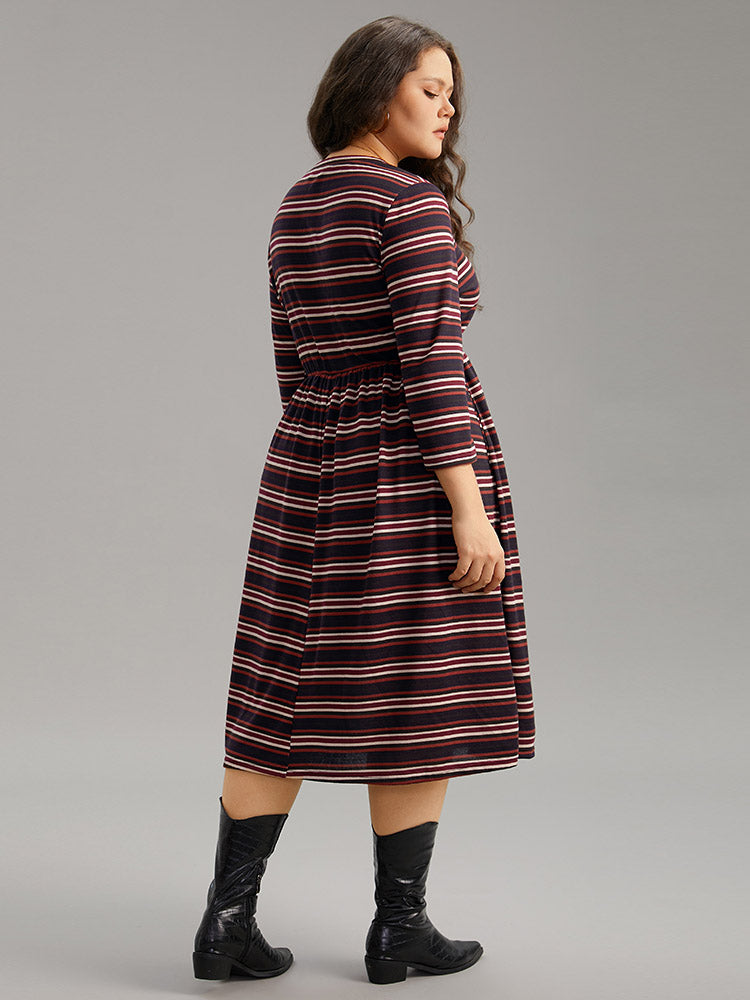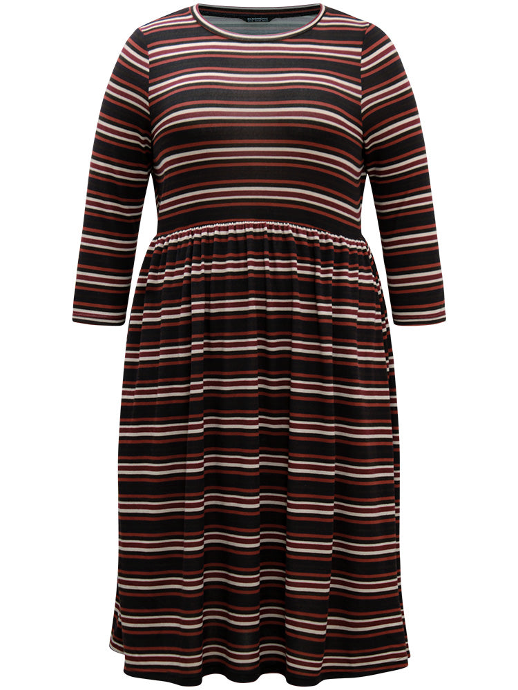 Striped Print Round Neck Pocket Elastic Waist Dress