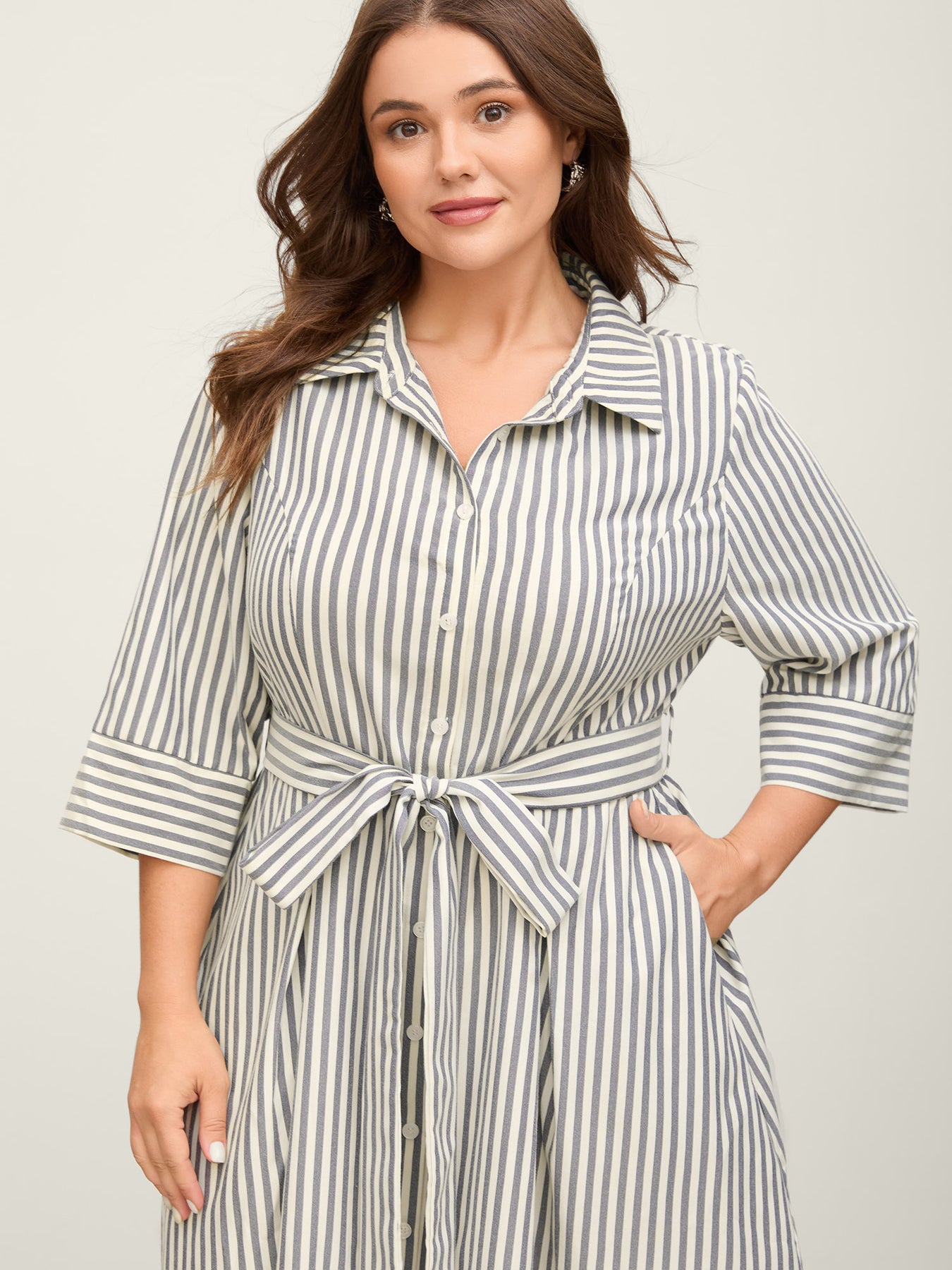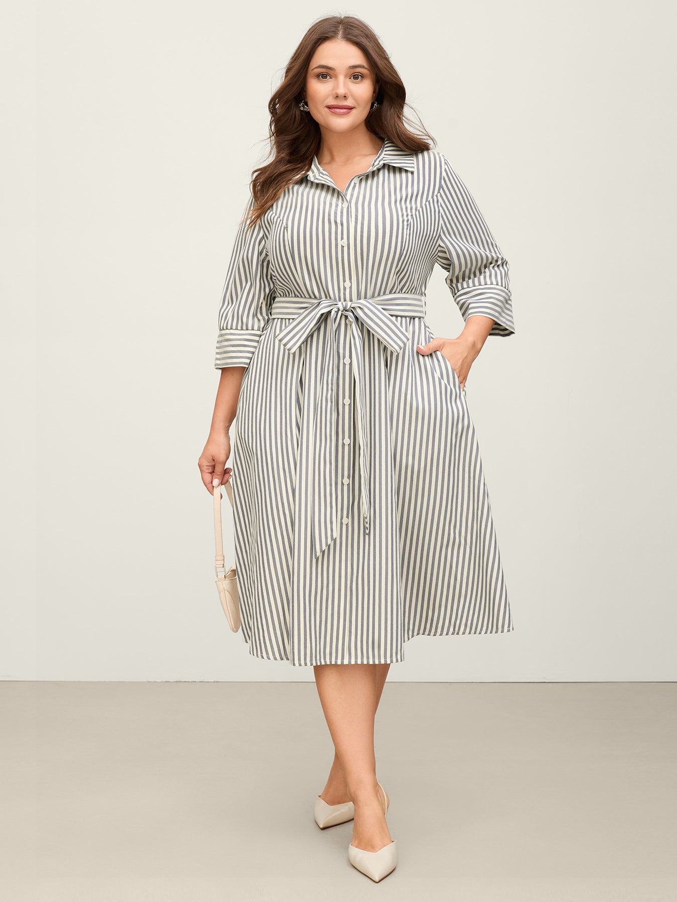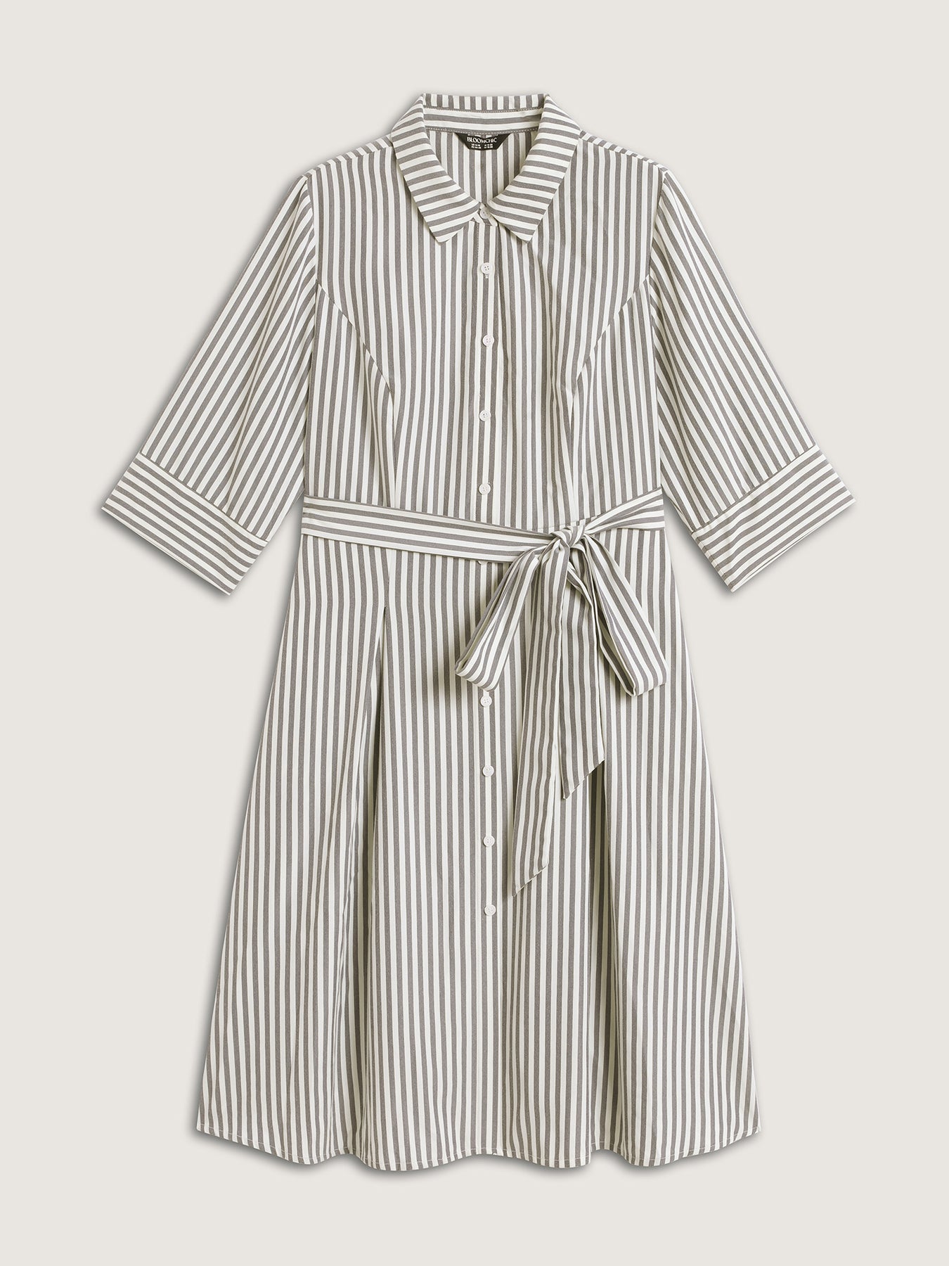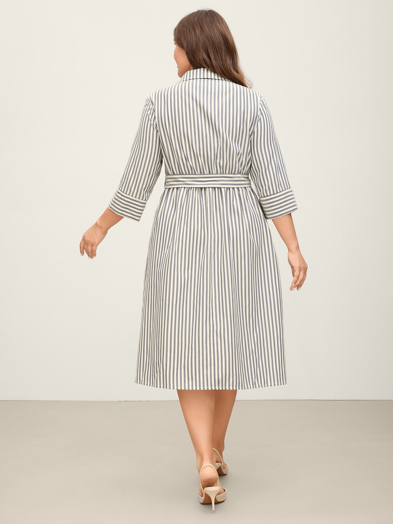 Striped Waist Belt Midi Shirt Dress