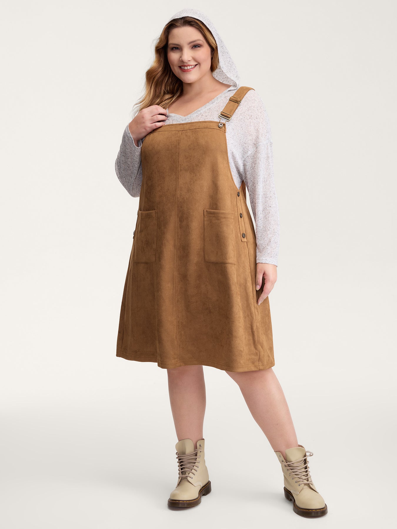 Suede Overall Adjustable Straps Midi Dress