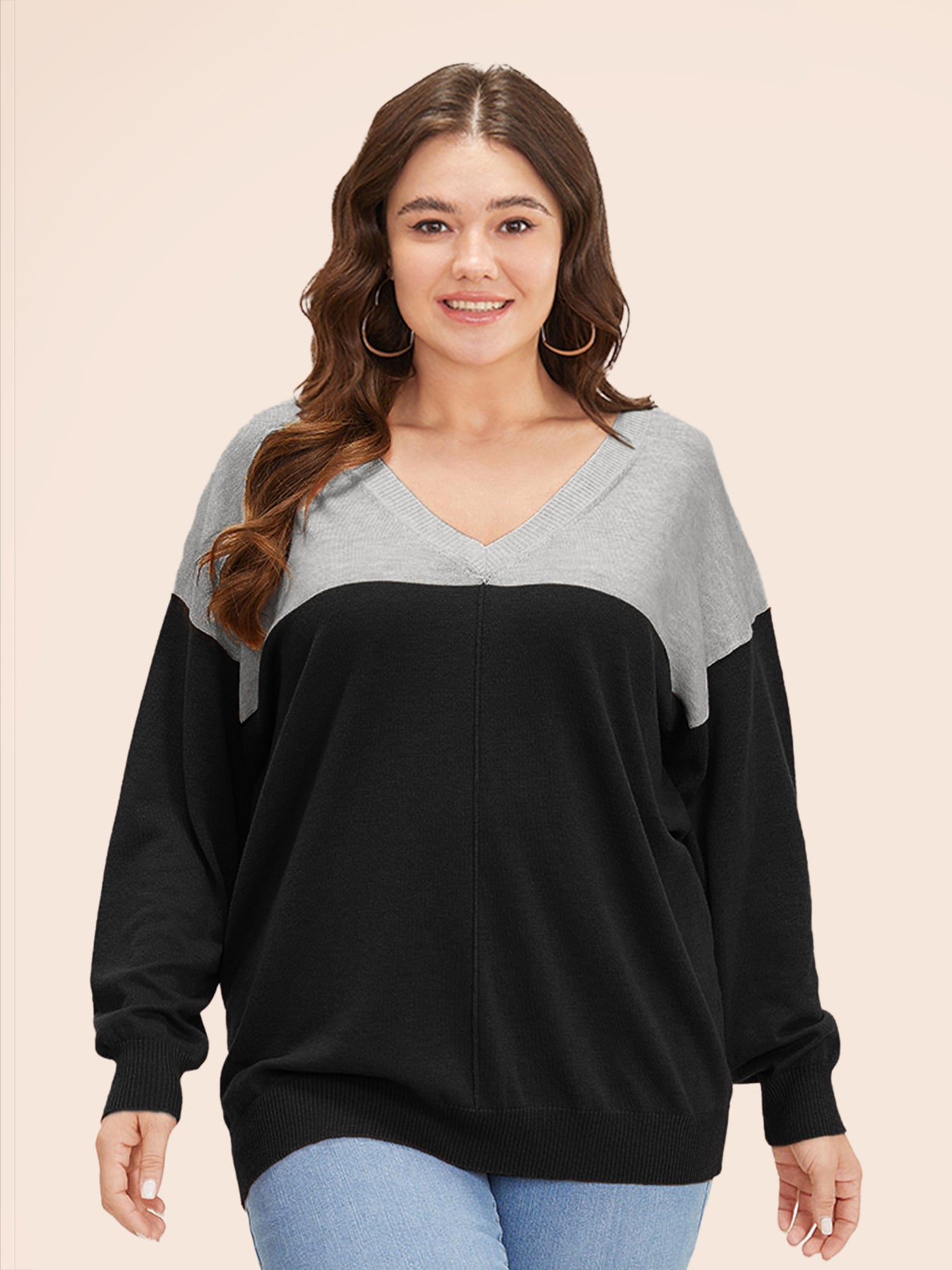 Supersoft Essentials Colorblock Two Tone Patchwork V Neck Pullover
