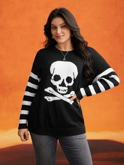 Supersoft Essentials Gothic Skull Striped Sleeves Pullover