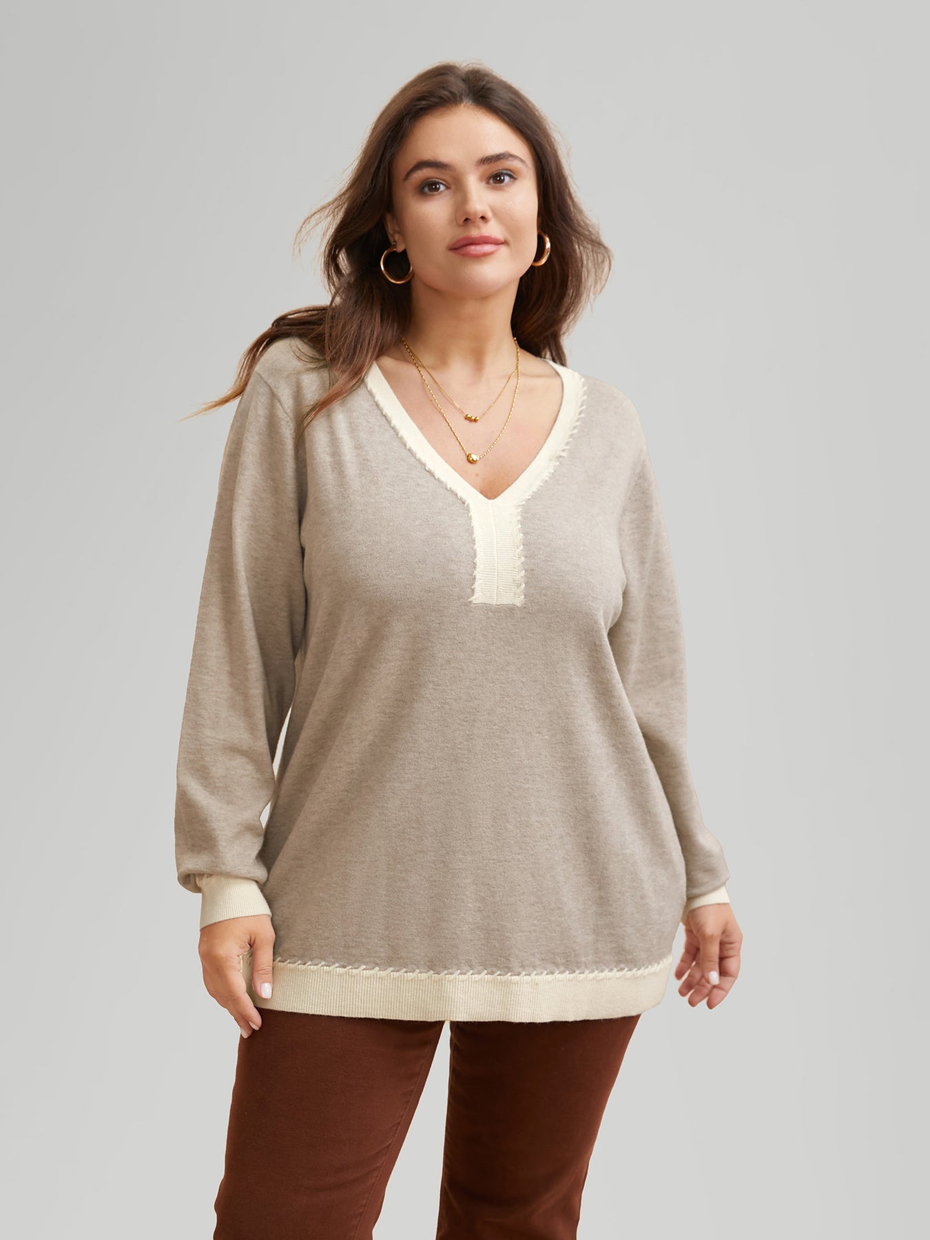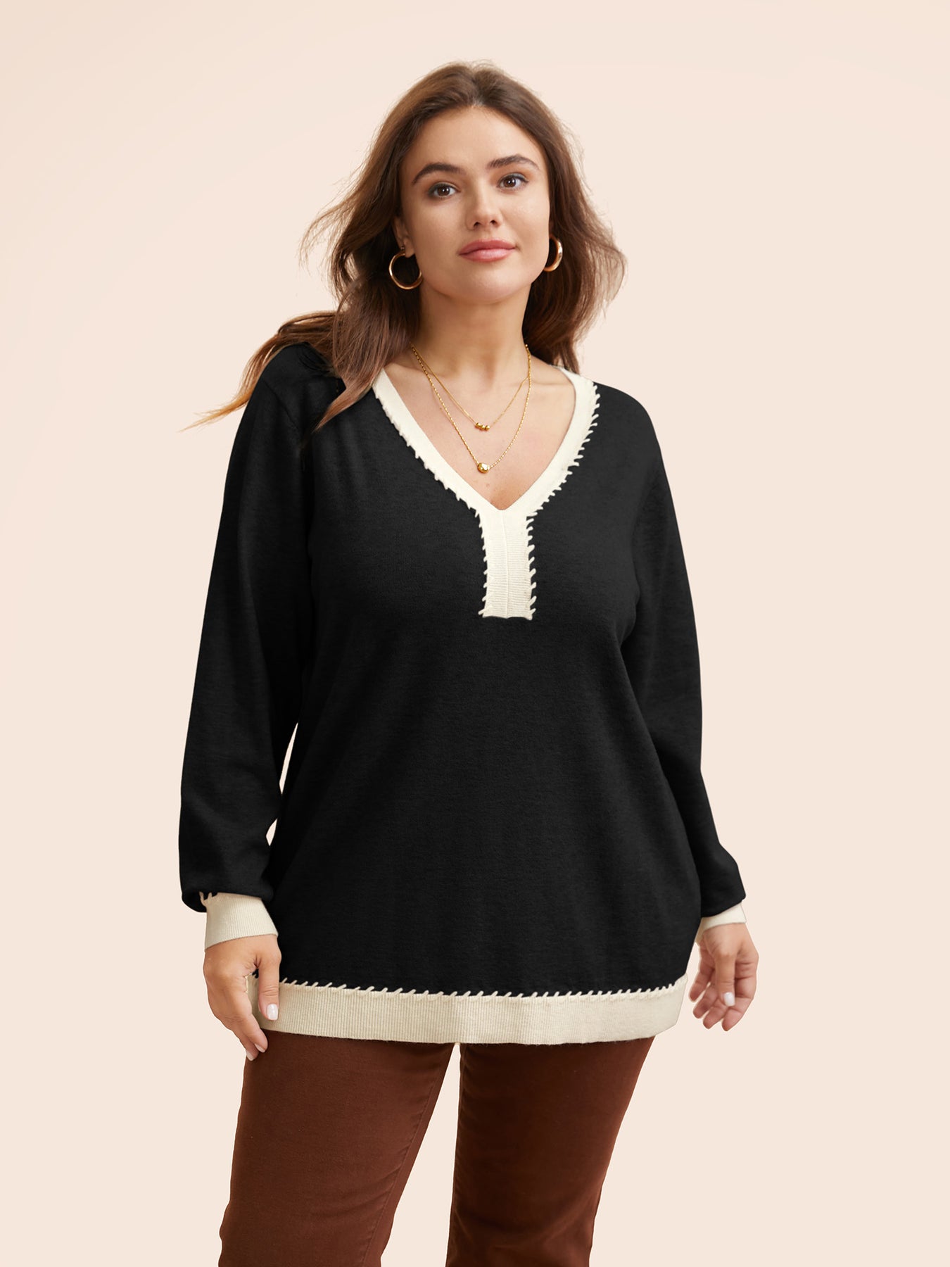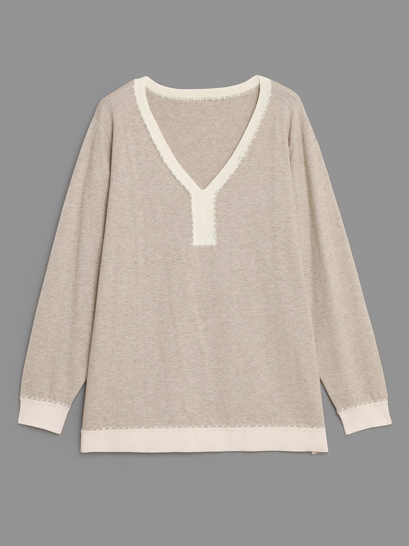 Supersoft Essentials V Neck Contrast Crochet Pullover