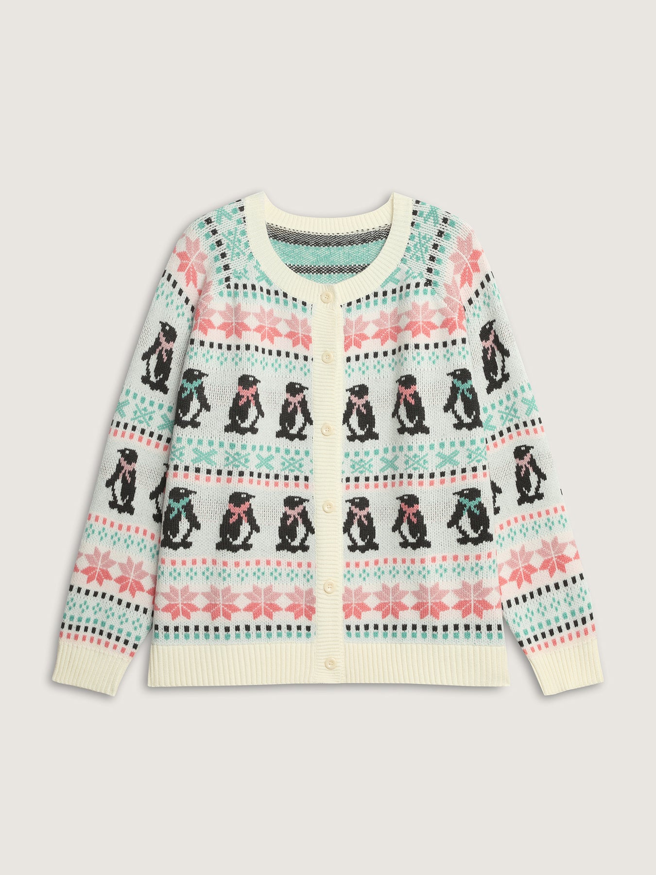 Supersoft Festive Penguin Pattern Jacquard Knit Cardigan