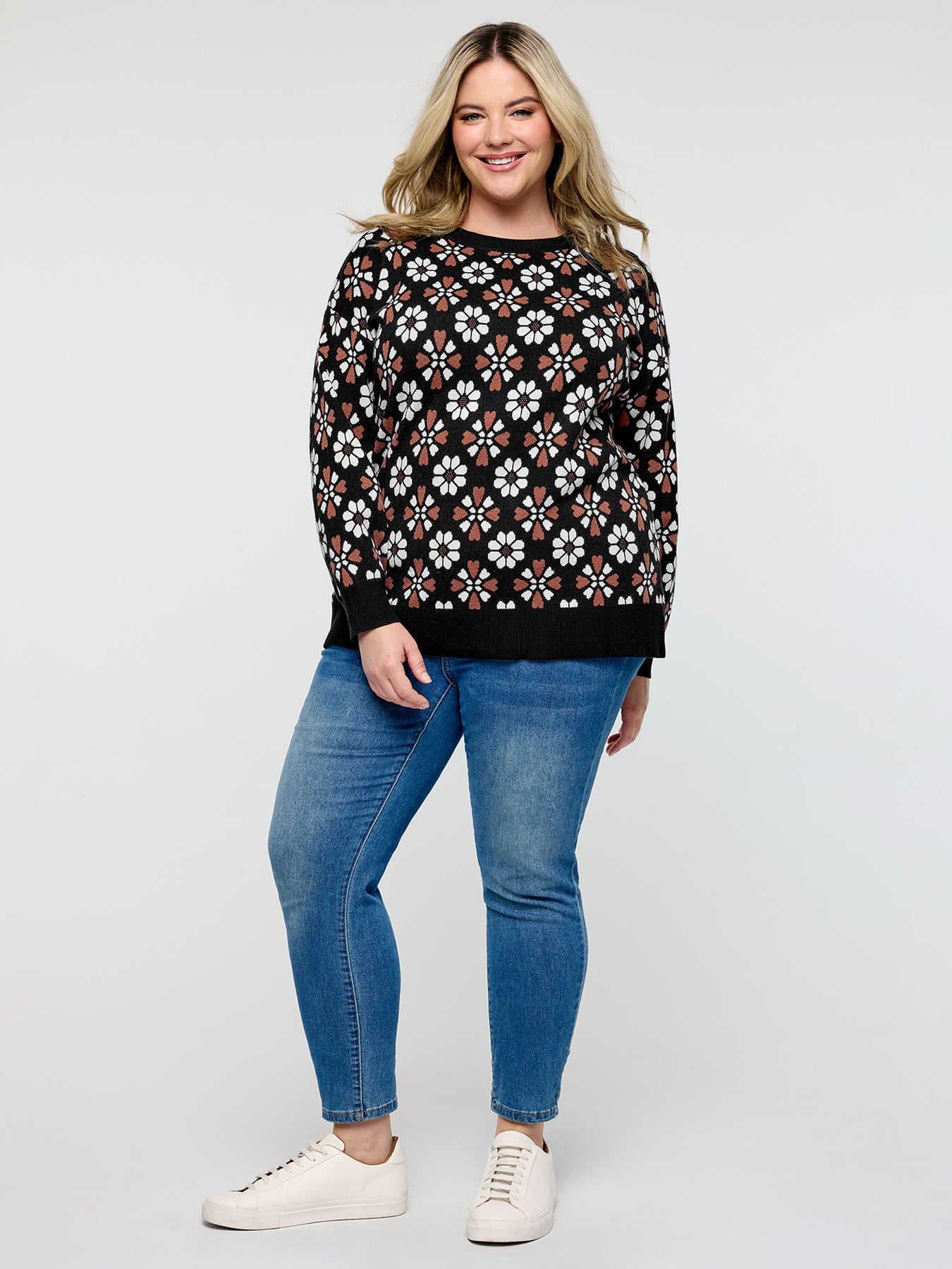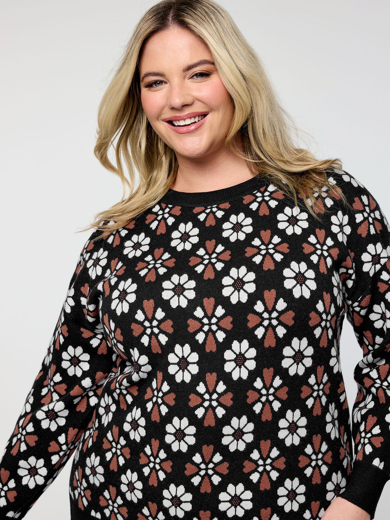 Supersoft Floral Jacquard Contrast Pullover