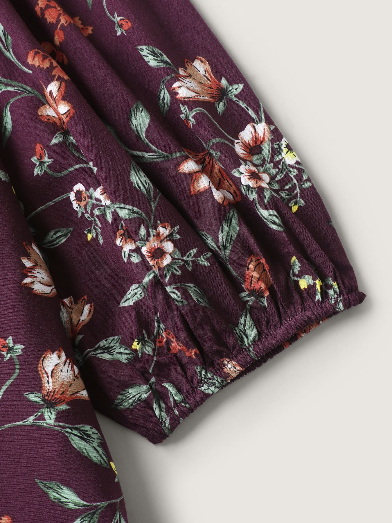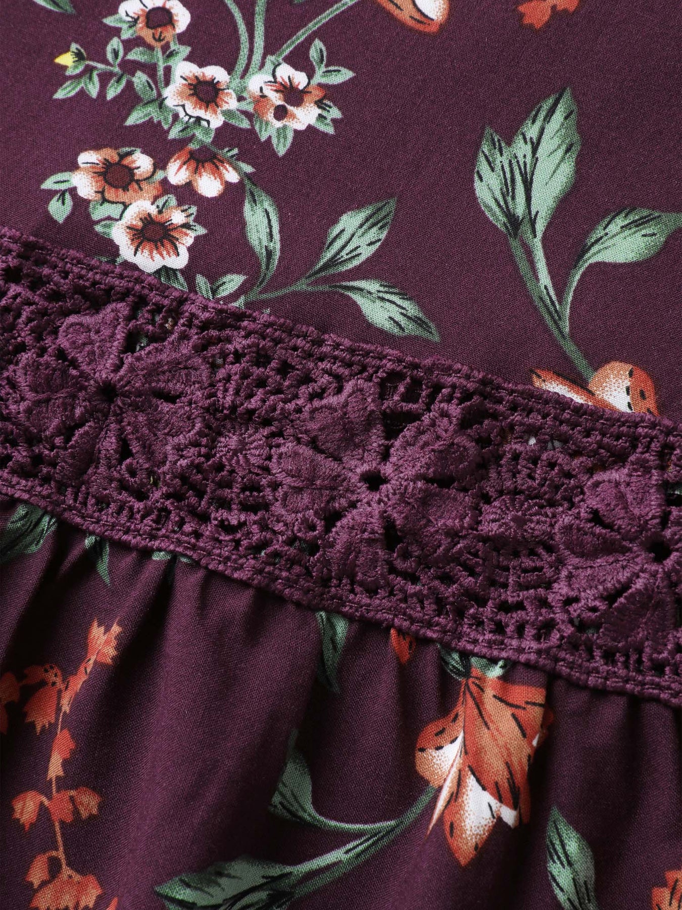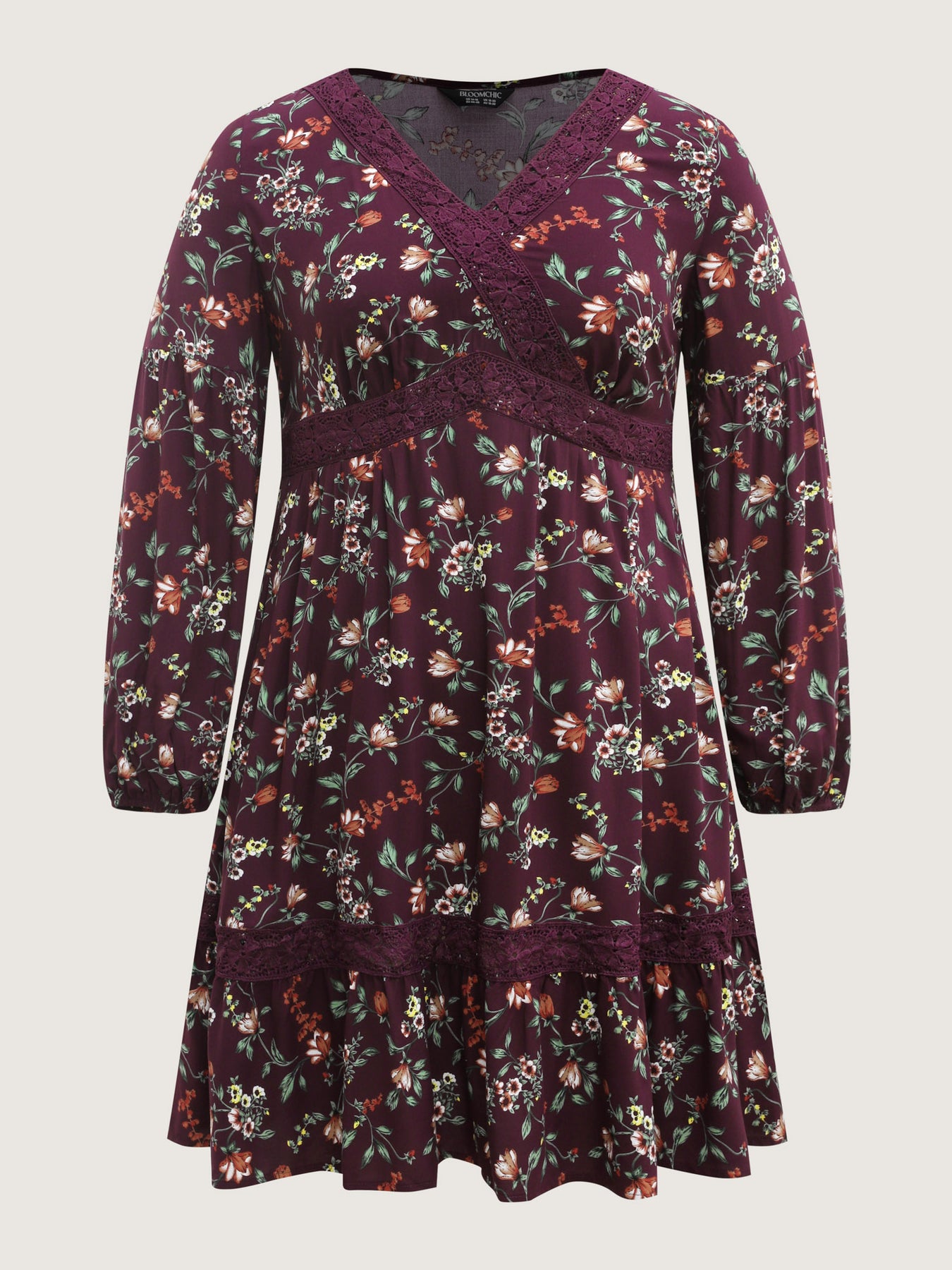 Supersoft Floral Print Lace Trim Knee-Length Dress