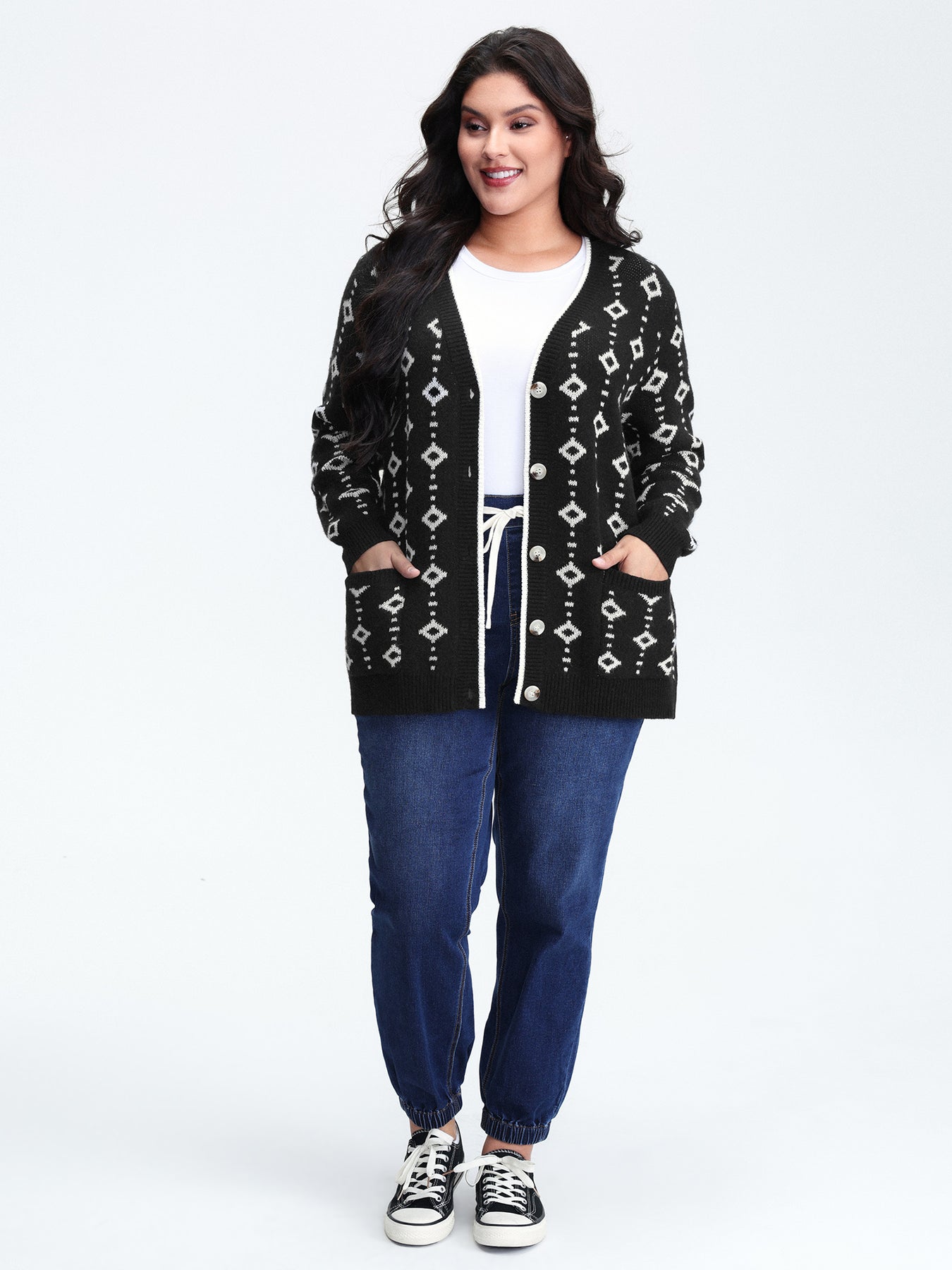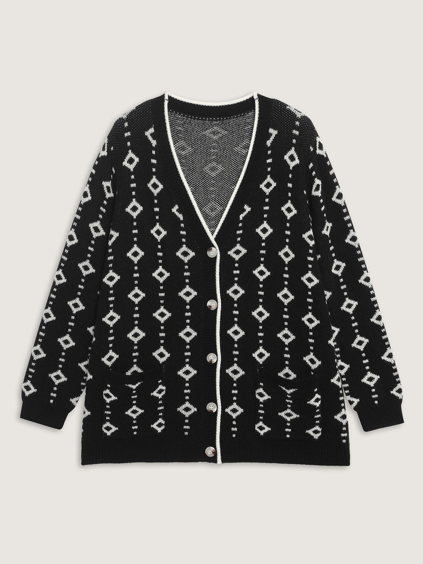 Supersoft Geometric Pattern Pockets Button Knit Cardigan