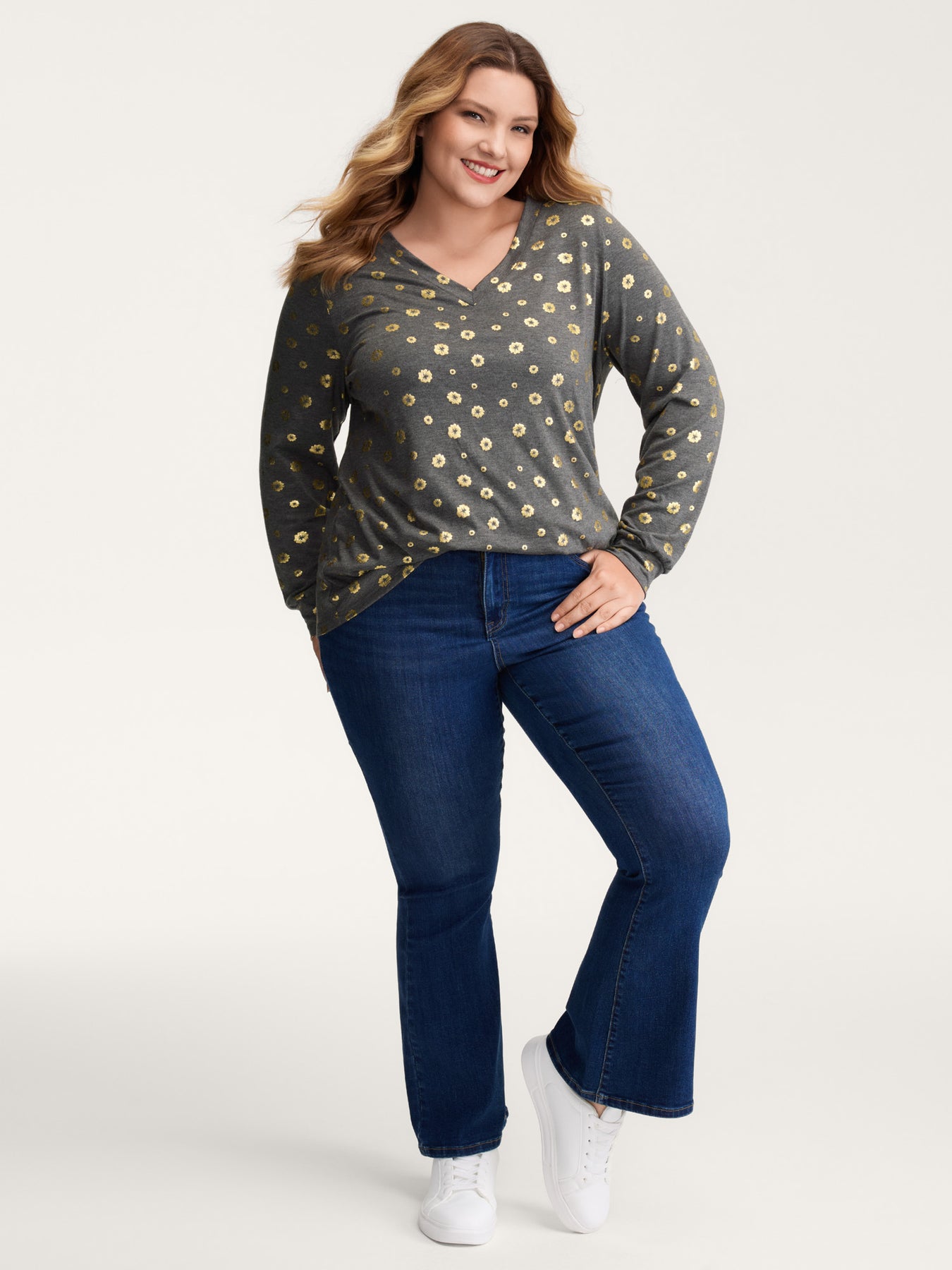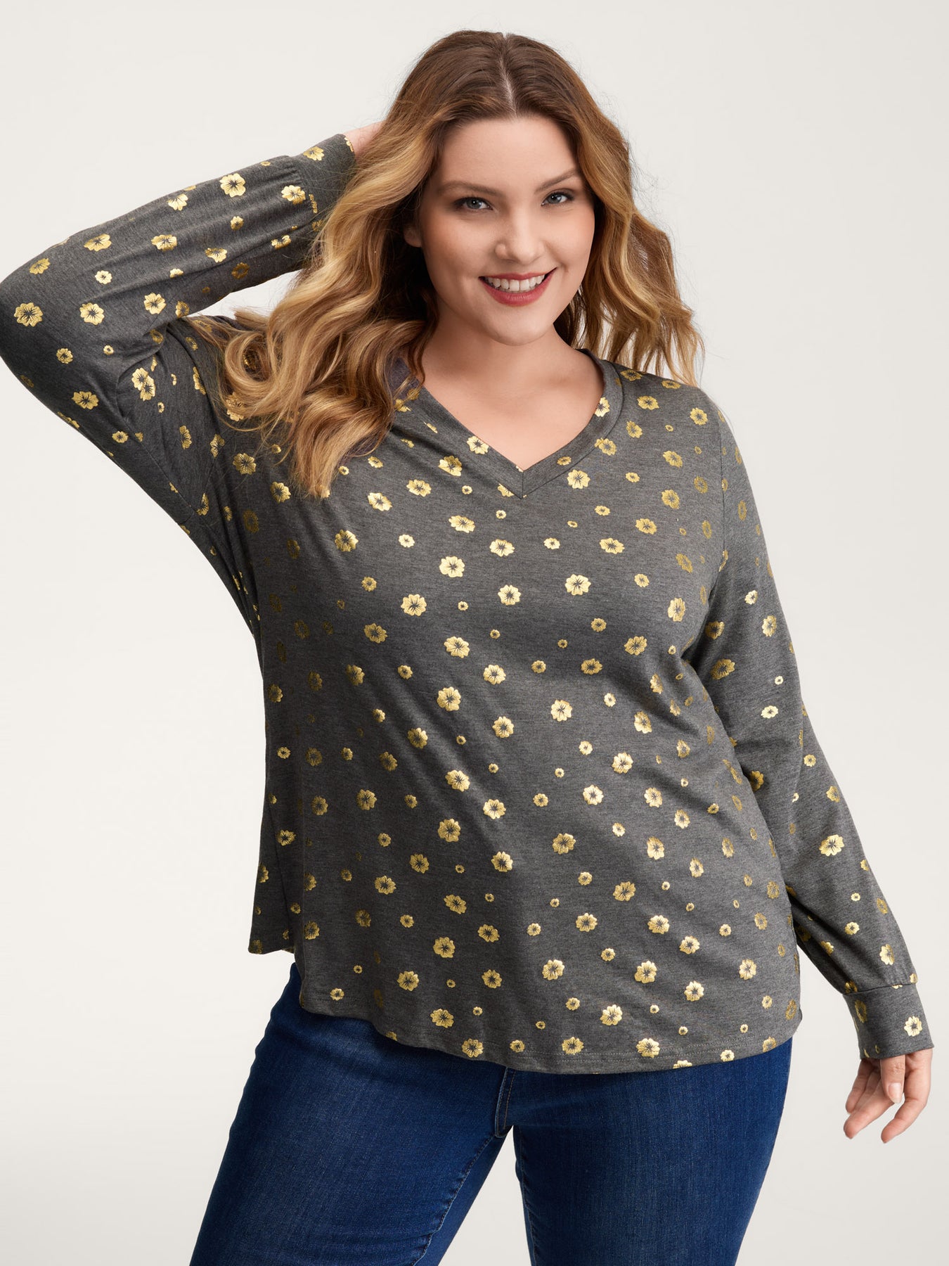 Supersoft Gold Sequin V-Neck T-Shirt
