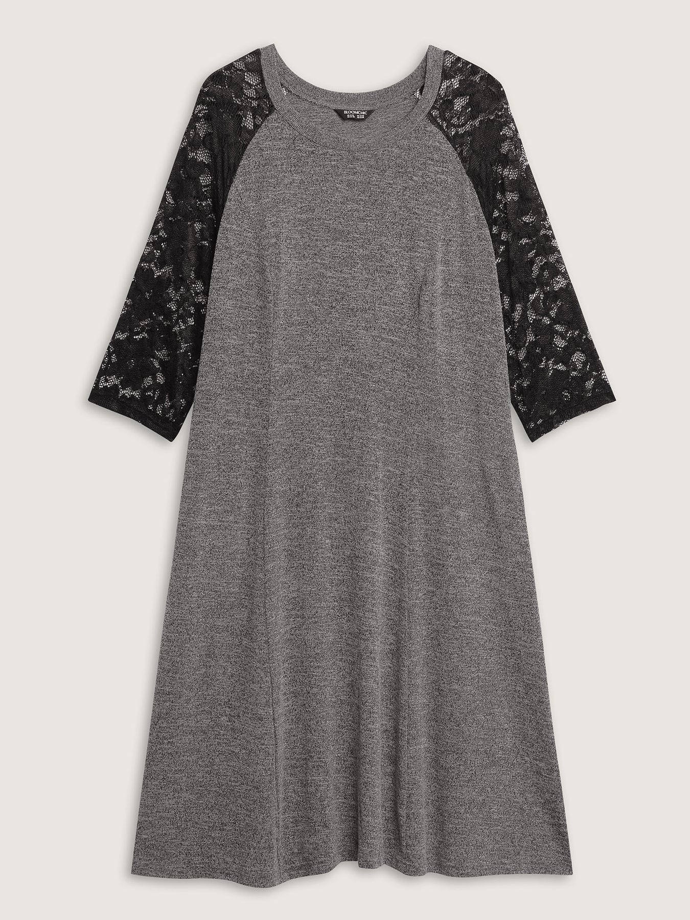 Supersoft Lace Sleeve Cinched-Waist Midi Dress