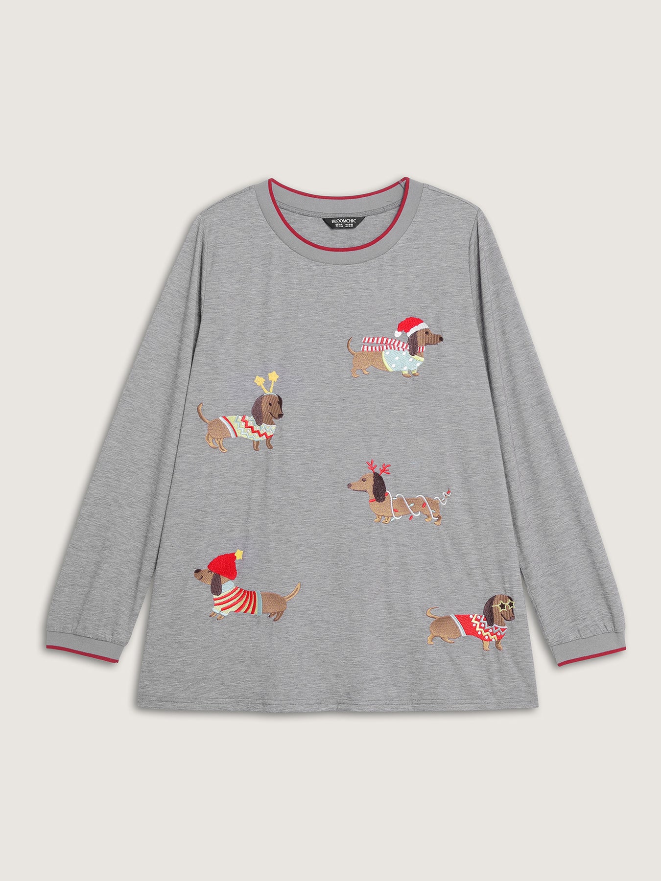 Supersoft Puppy Embroidery Contrast T-Shirt