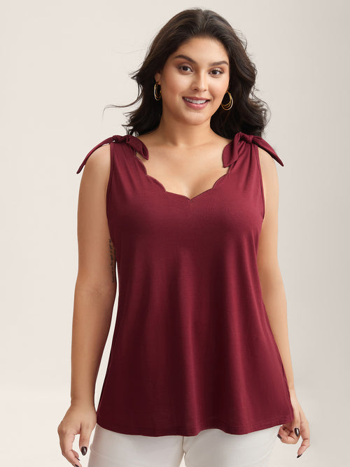 Supersoft Stretchy Scalloped Neck Tank Top