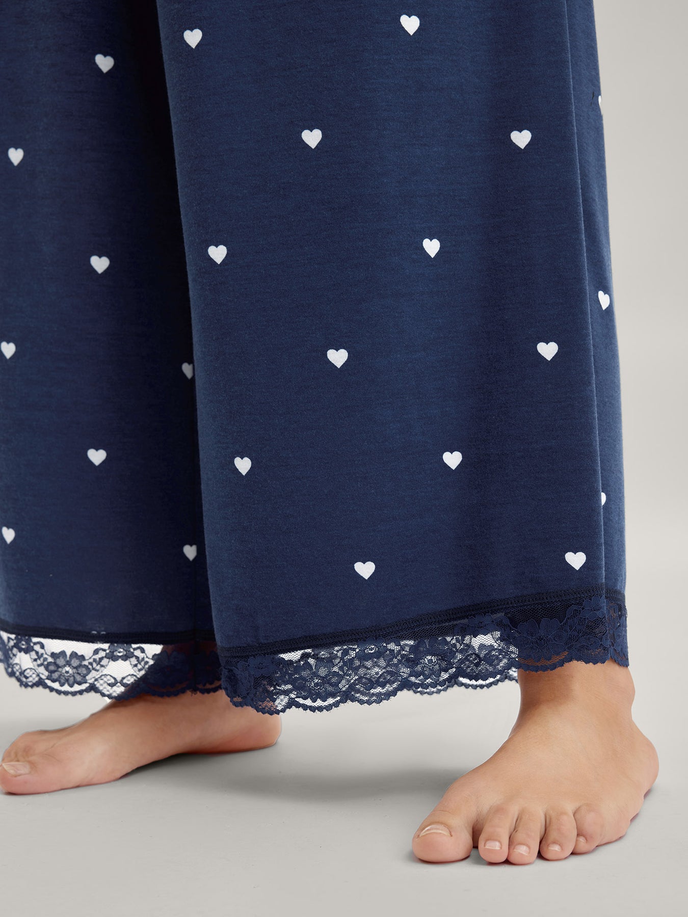 Supersoft Tiny Hearts Print Waist Drawstring Lounge Bottoms