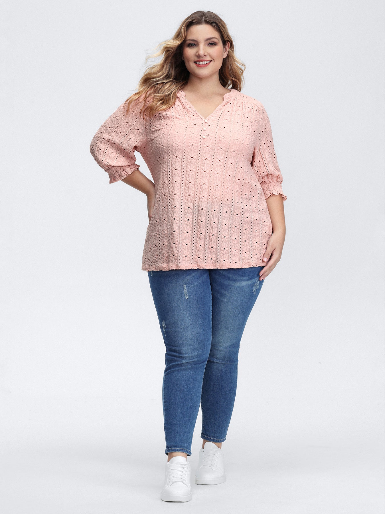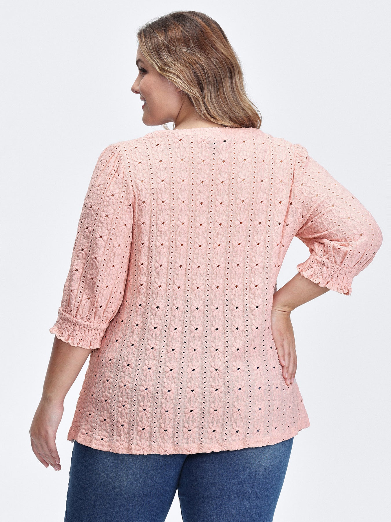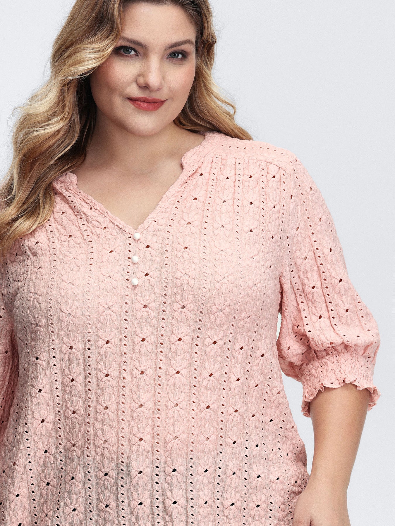 Texture Shirred Sleeve Cut Out T-Shirt