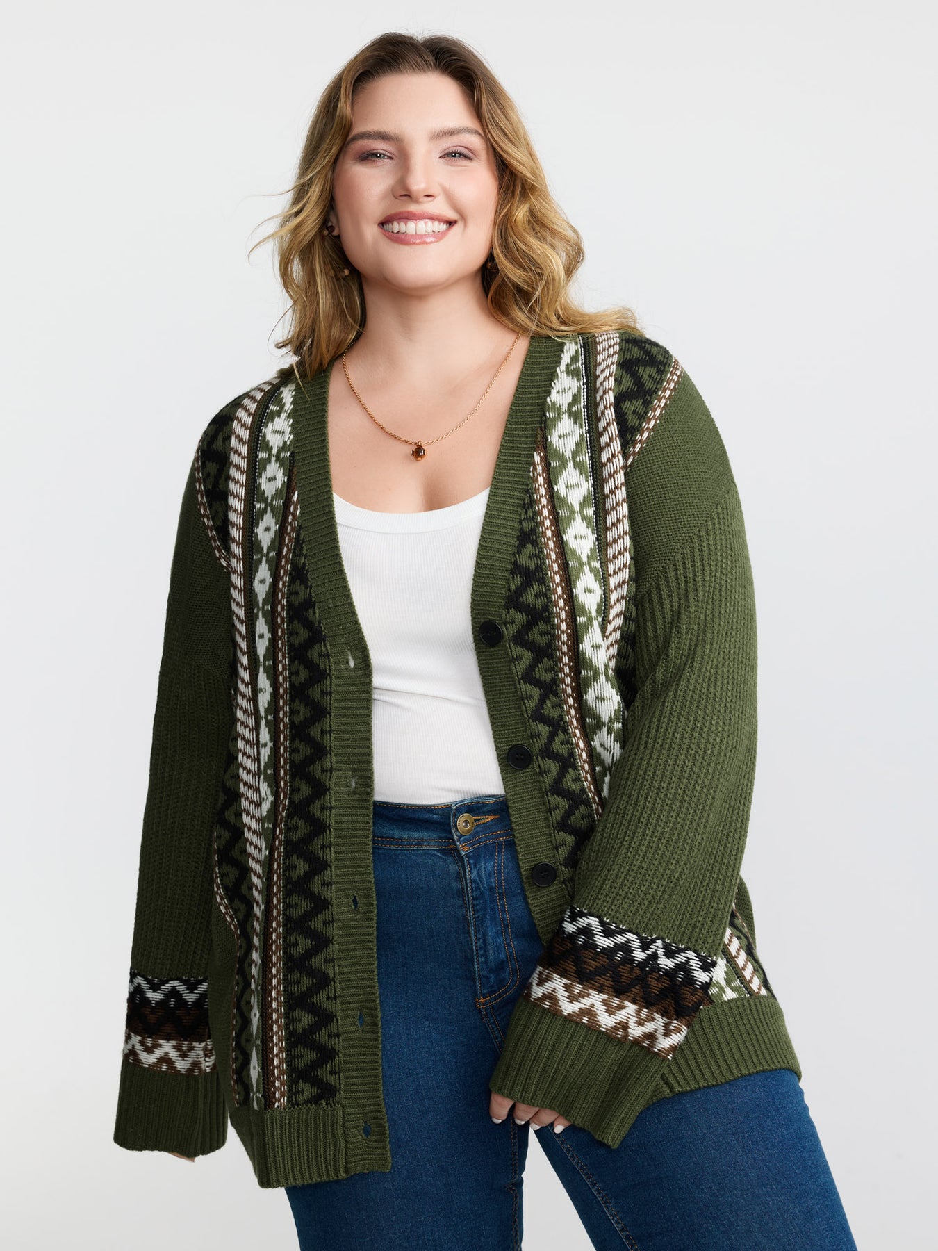 Textured Button-Front Straight Sleeve Knit Cardigan