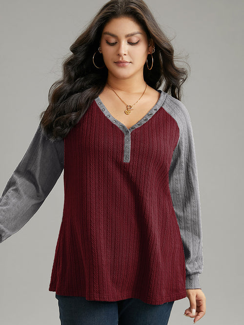 Textured Contrast Button Detail Raglan Sleeve Sweatshirt