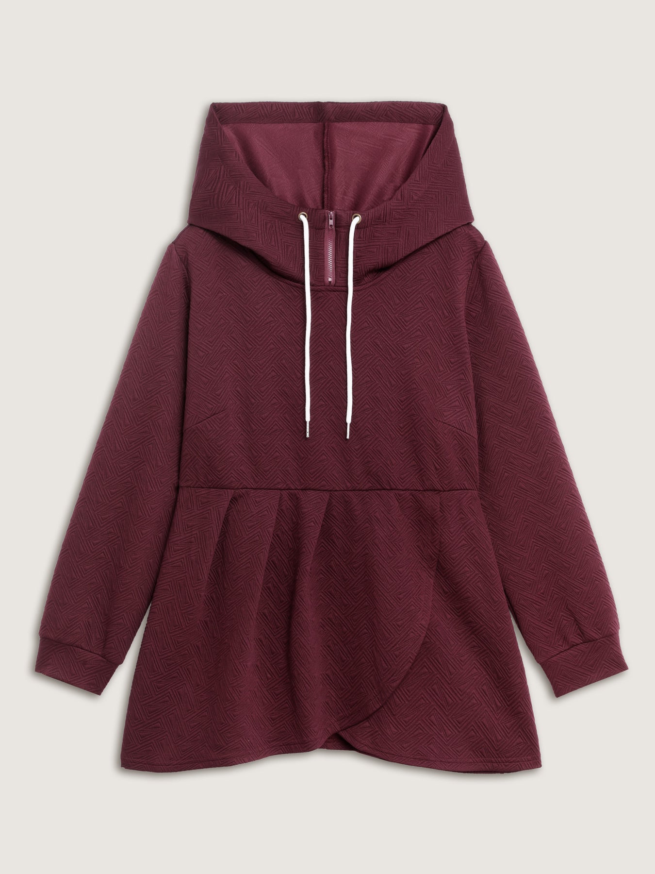 Textured Drawstring Overlap Hem Hooded Sweatshirt