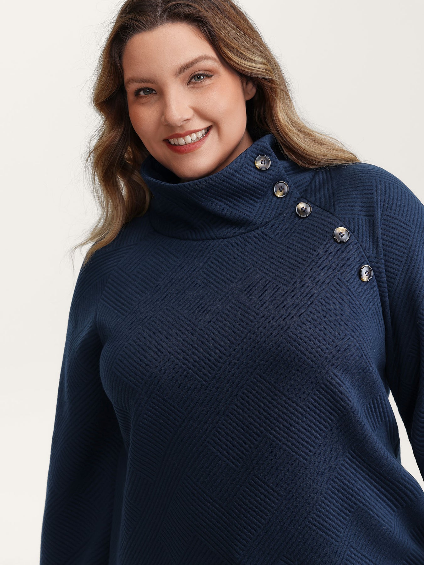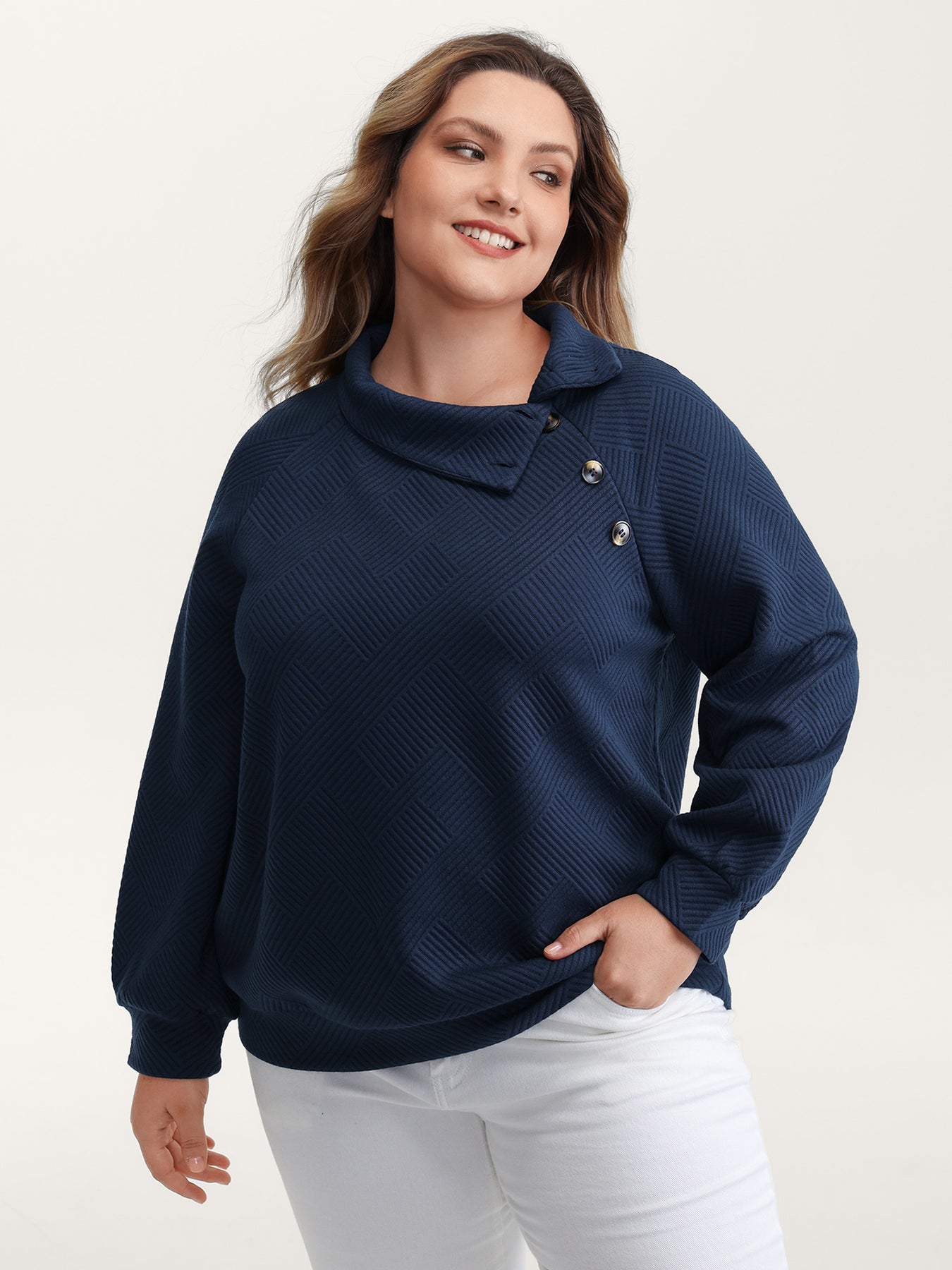 Textured Folded Collar Button Sweatshirt