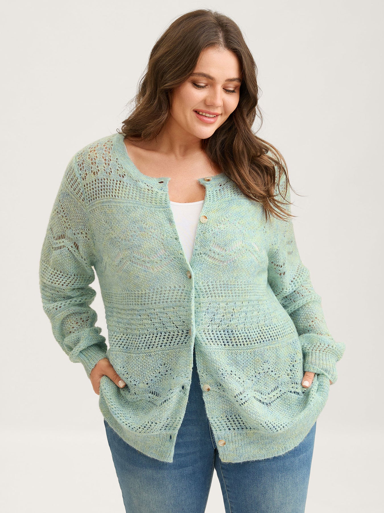 Textured Heather Button Front Knit Cardigan
