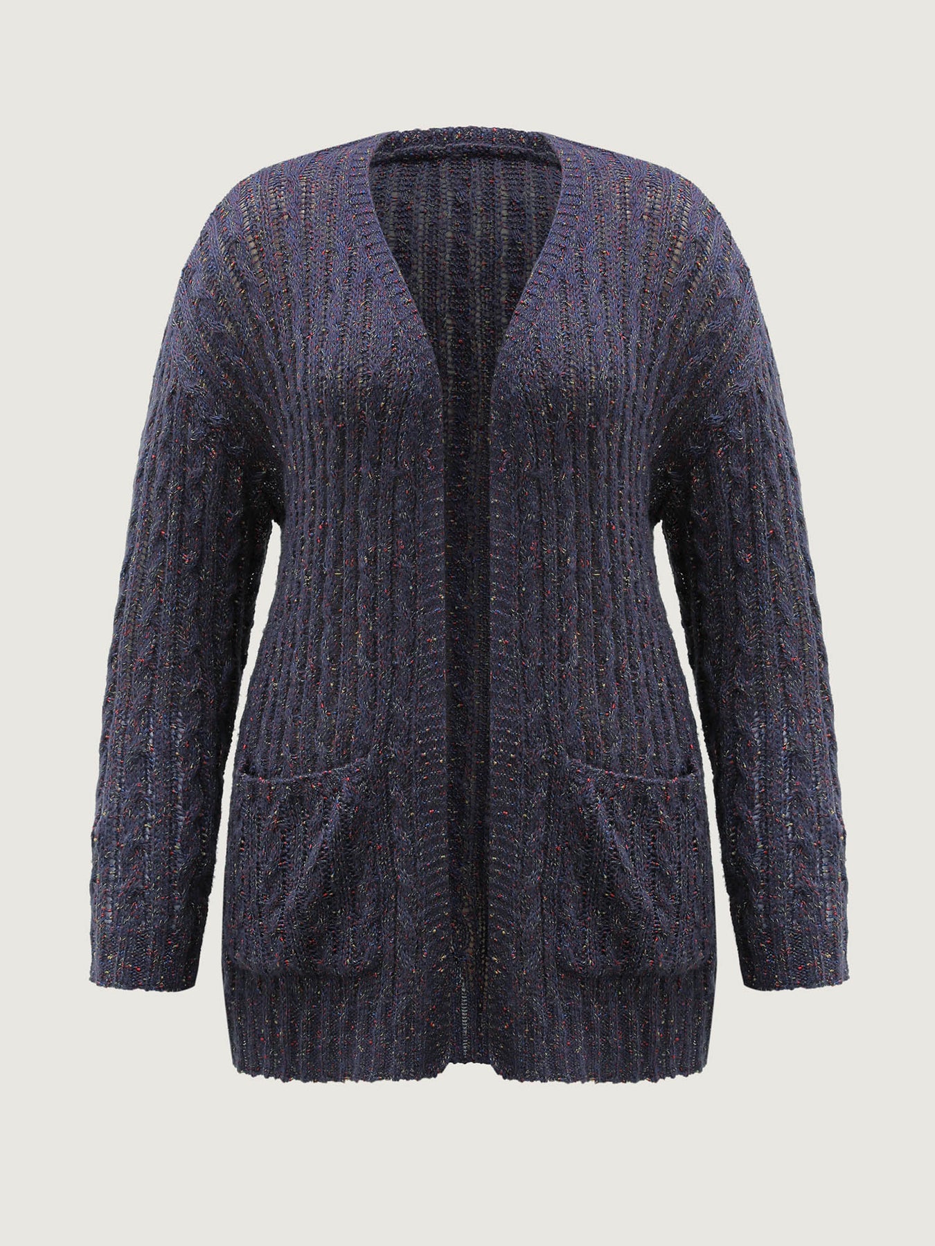 Textured Heather Pockets Open-Front Cardigan