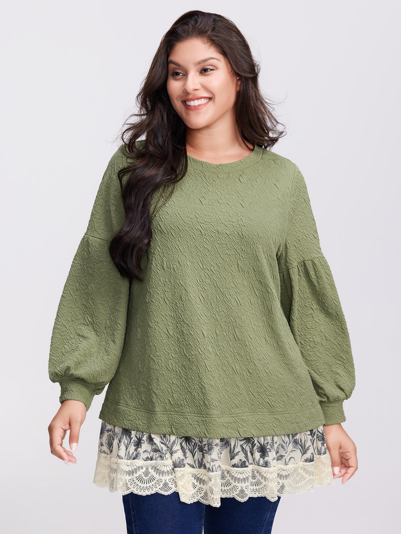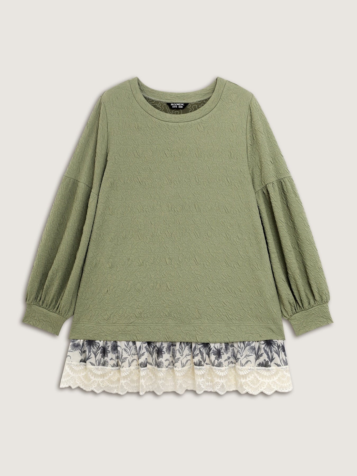 Textured Lace Layered Balloon Sleeve Sweatshirt