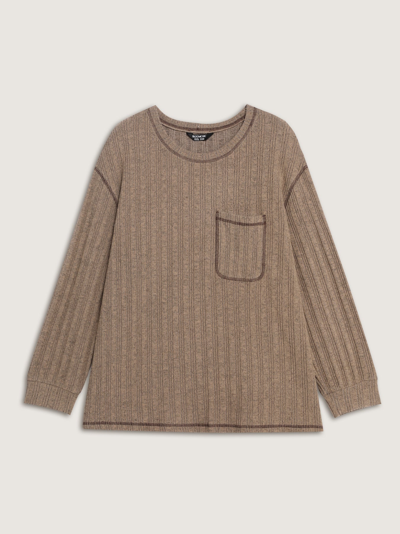 Textured Patch Pocket Round Neck Sweatshirt