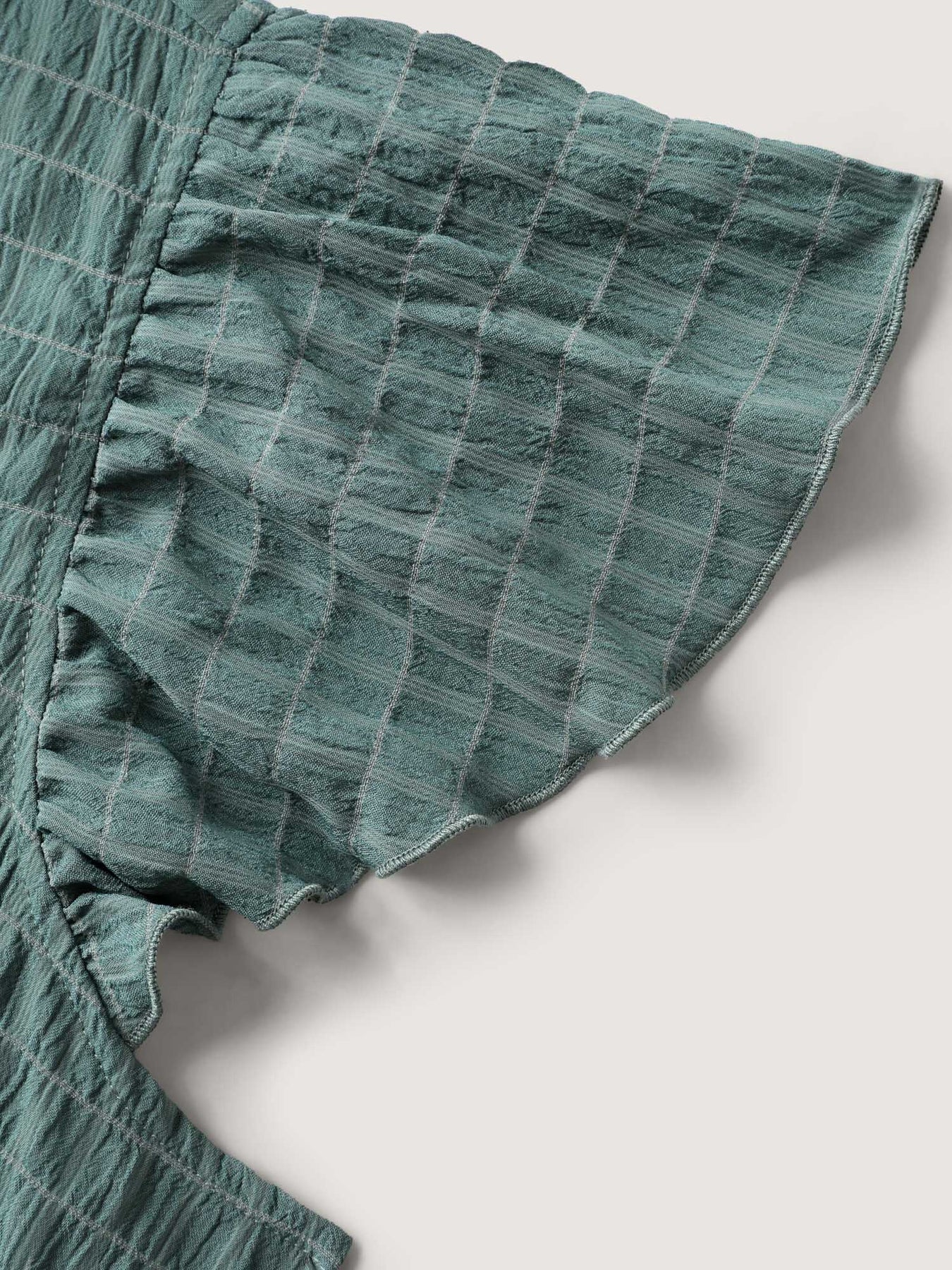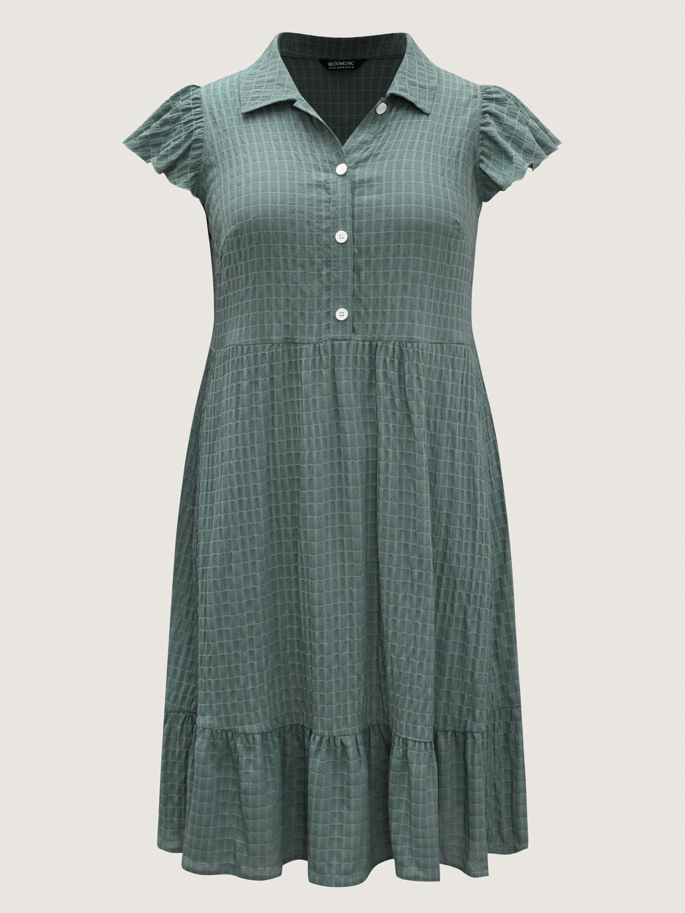 Textured Pockets Collar Flutter Sleeve Midi Dress