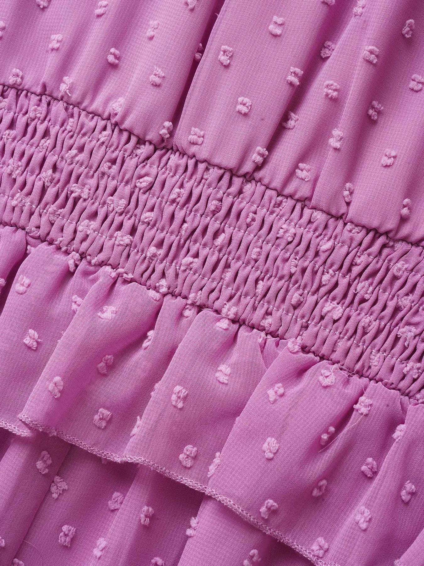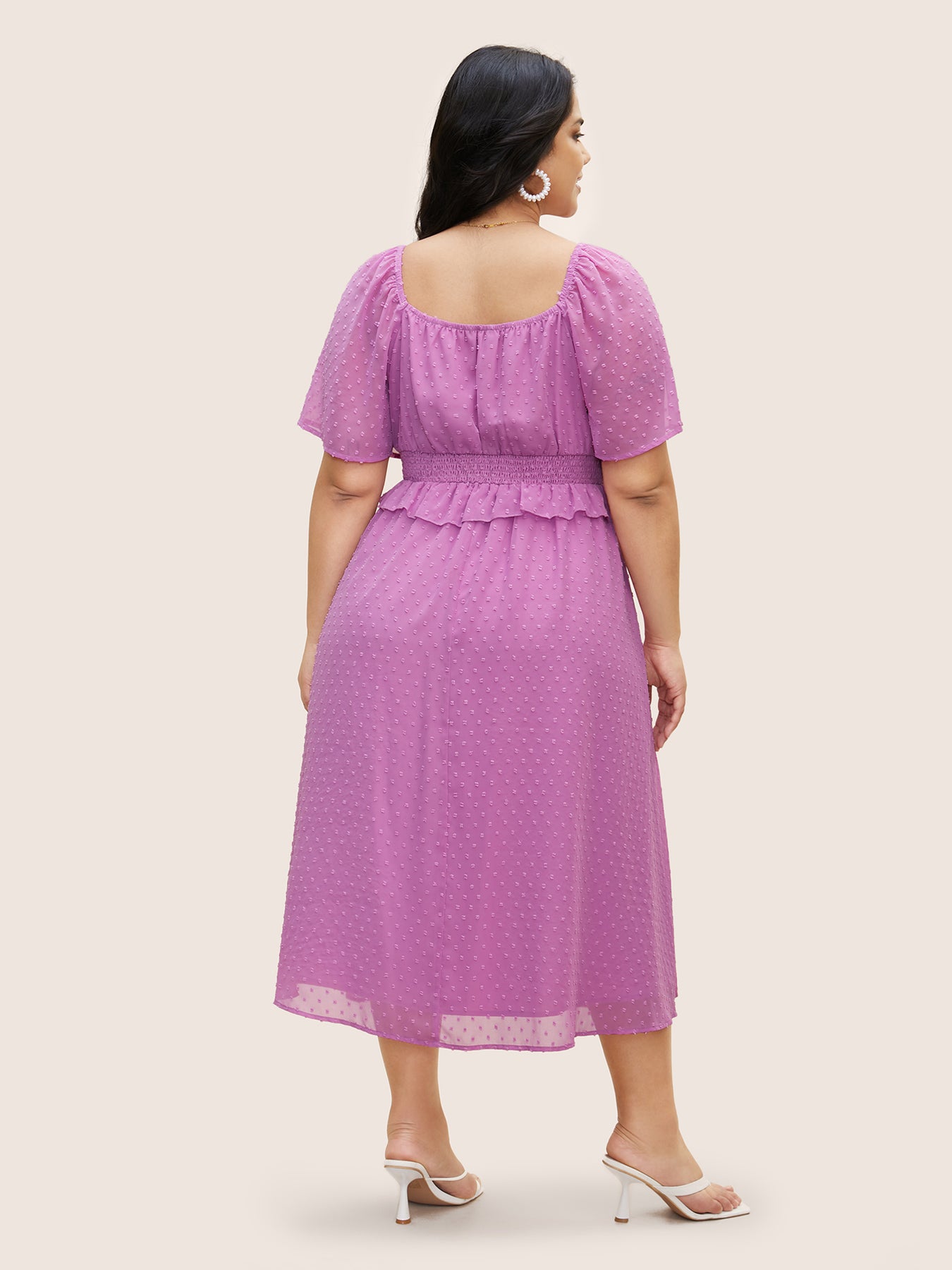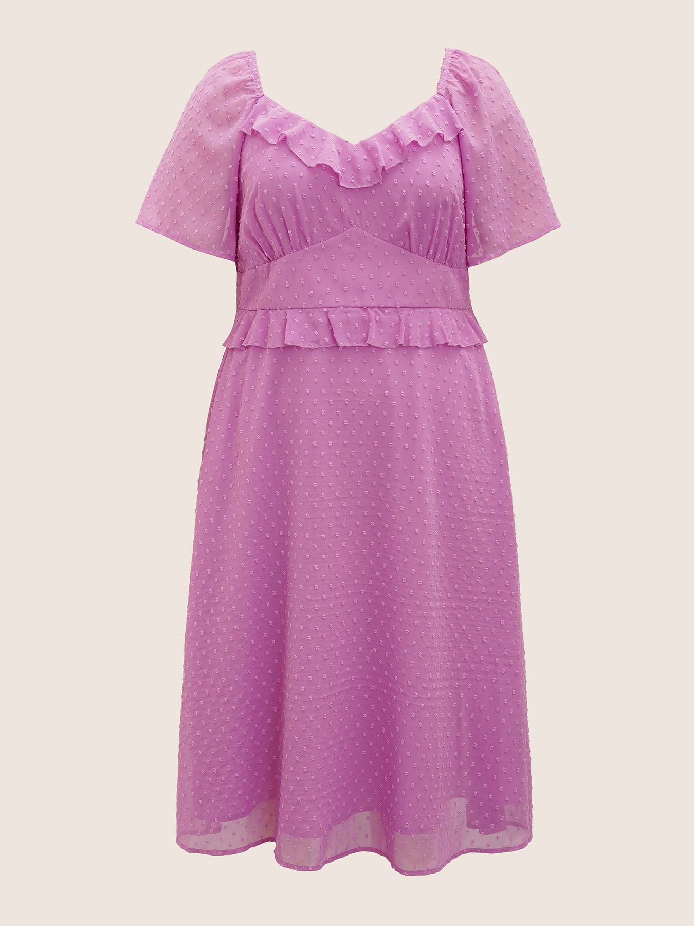 Textured Ruffles Shirred Raglan Sleeve Dress