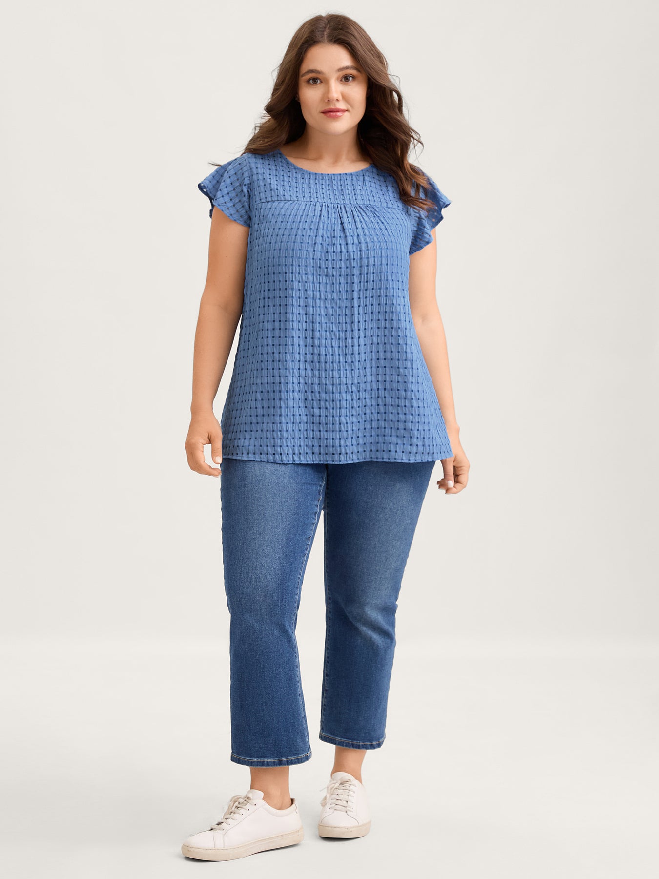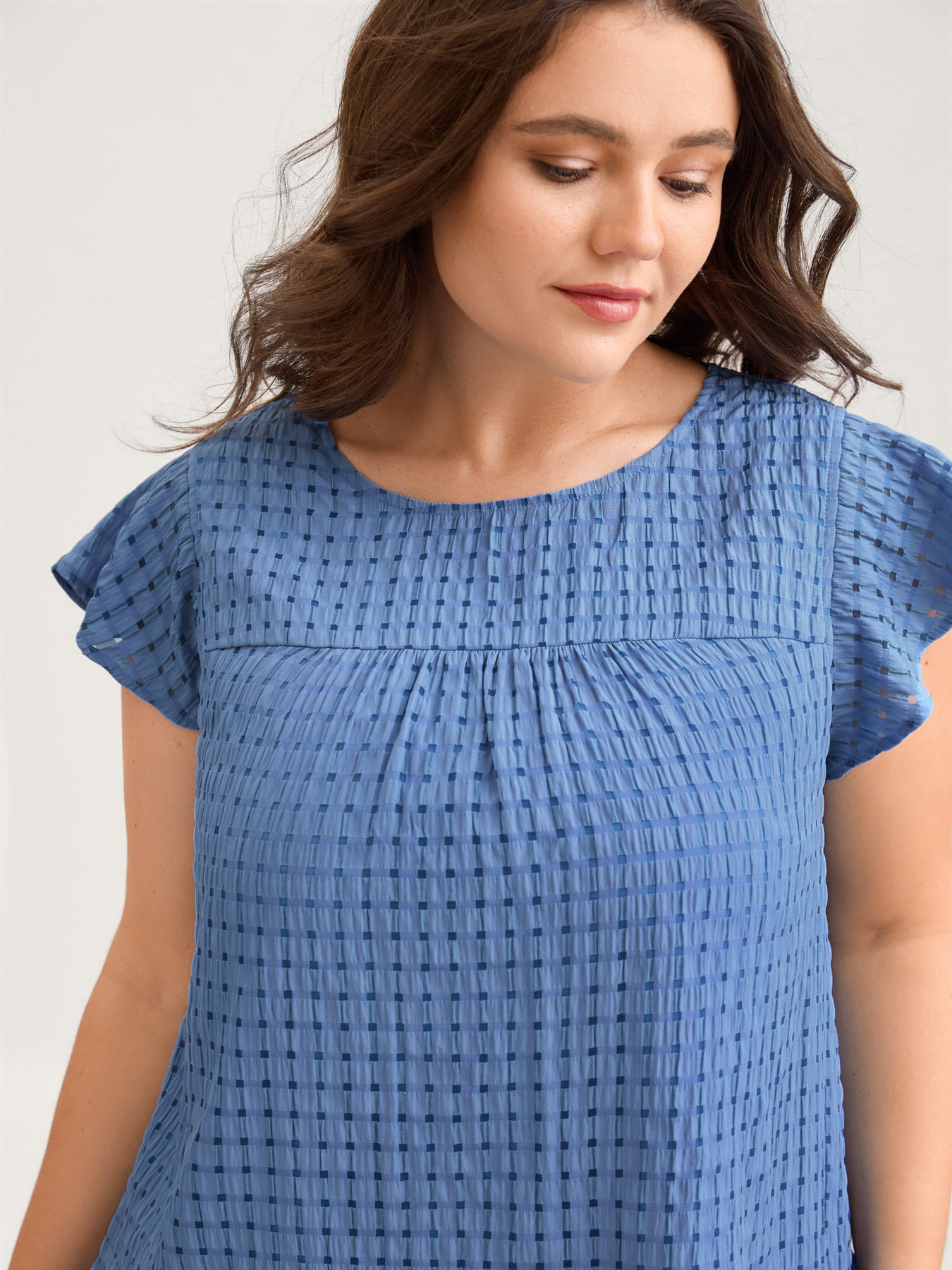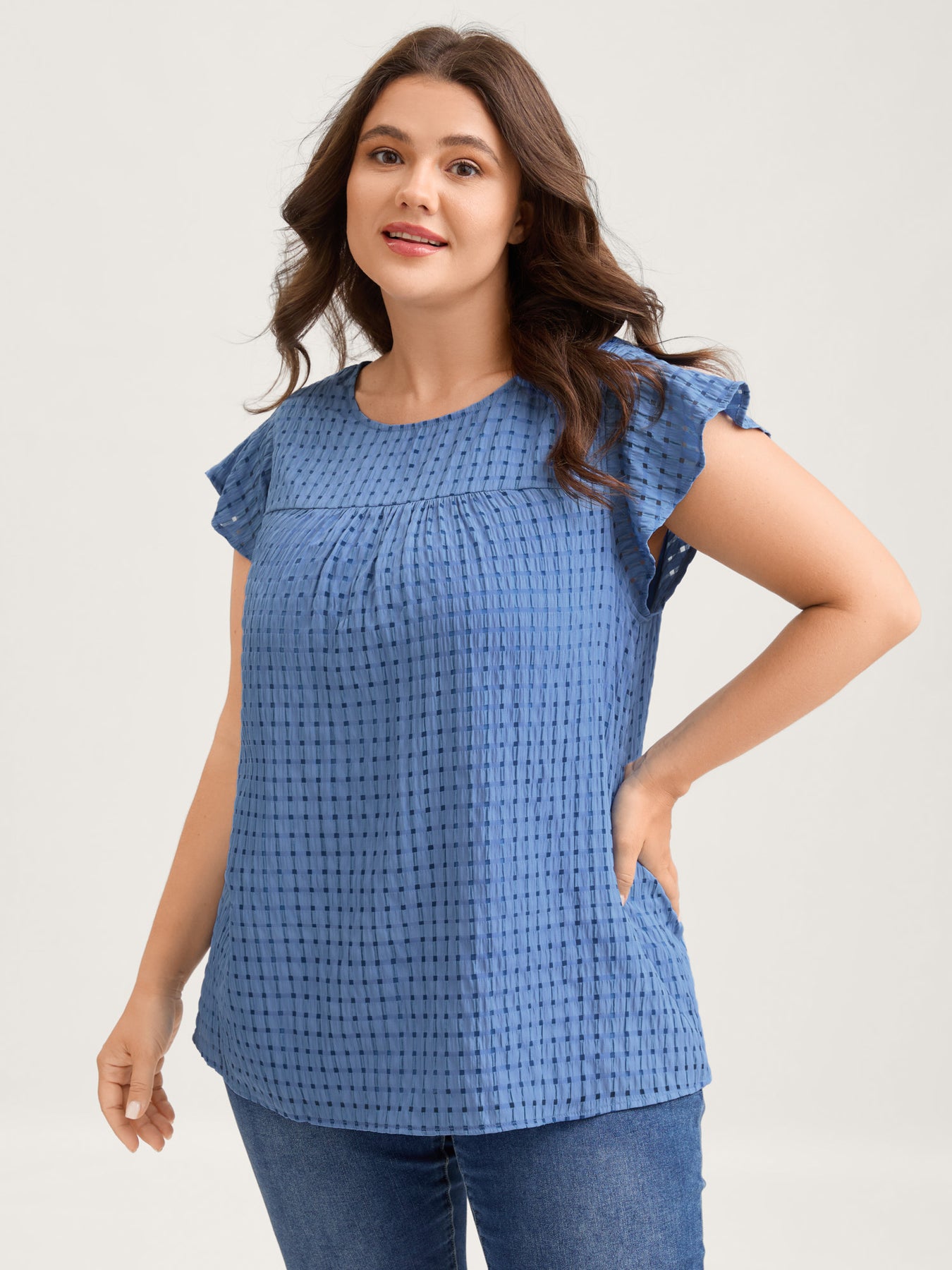 Textured Sheer Lined Flutter Sleeve Blouse