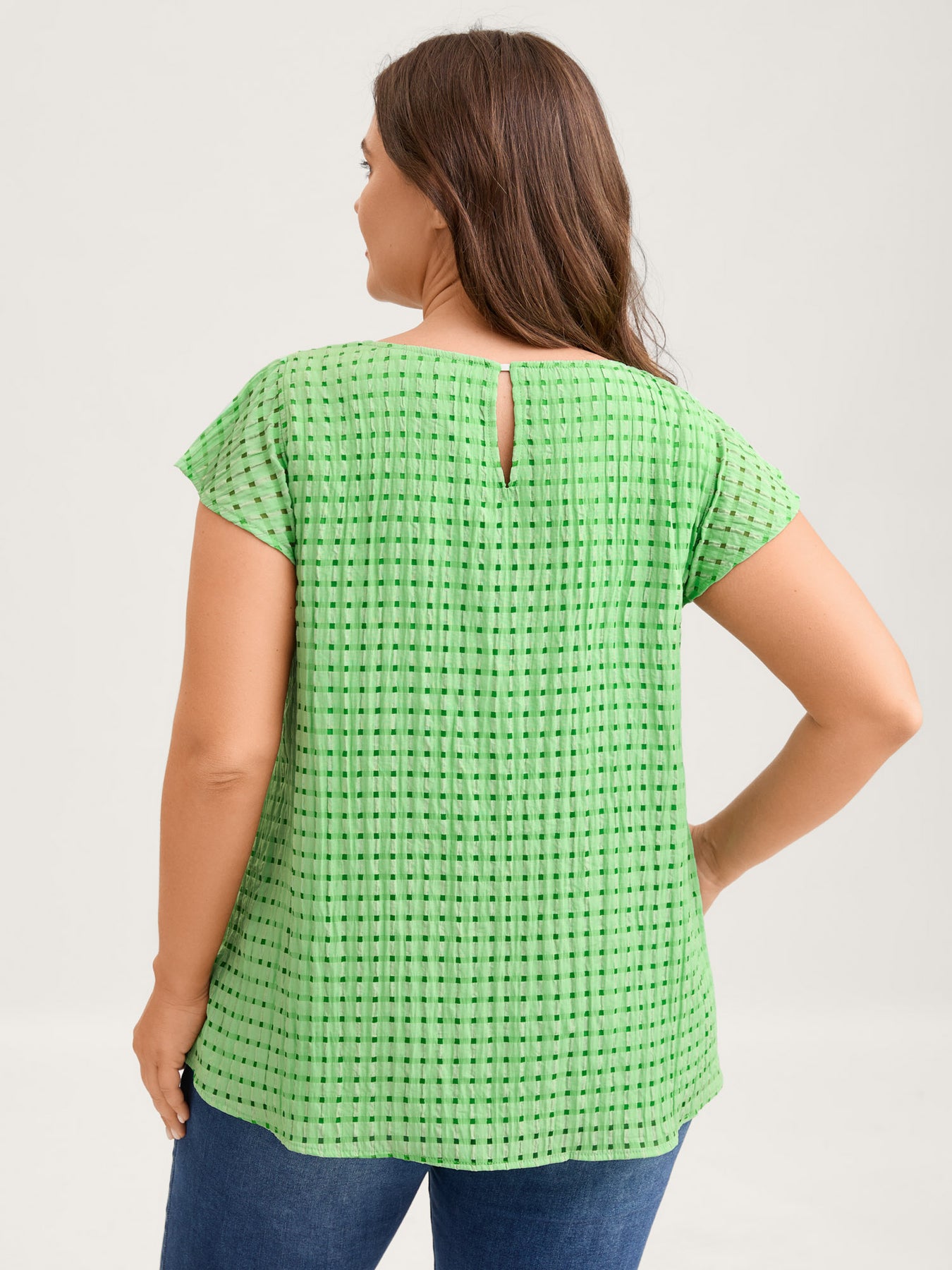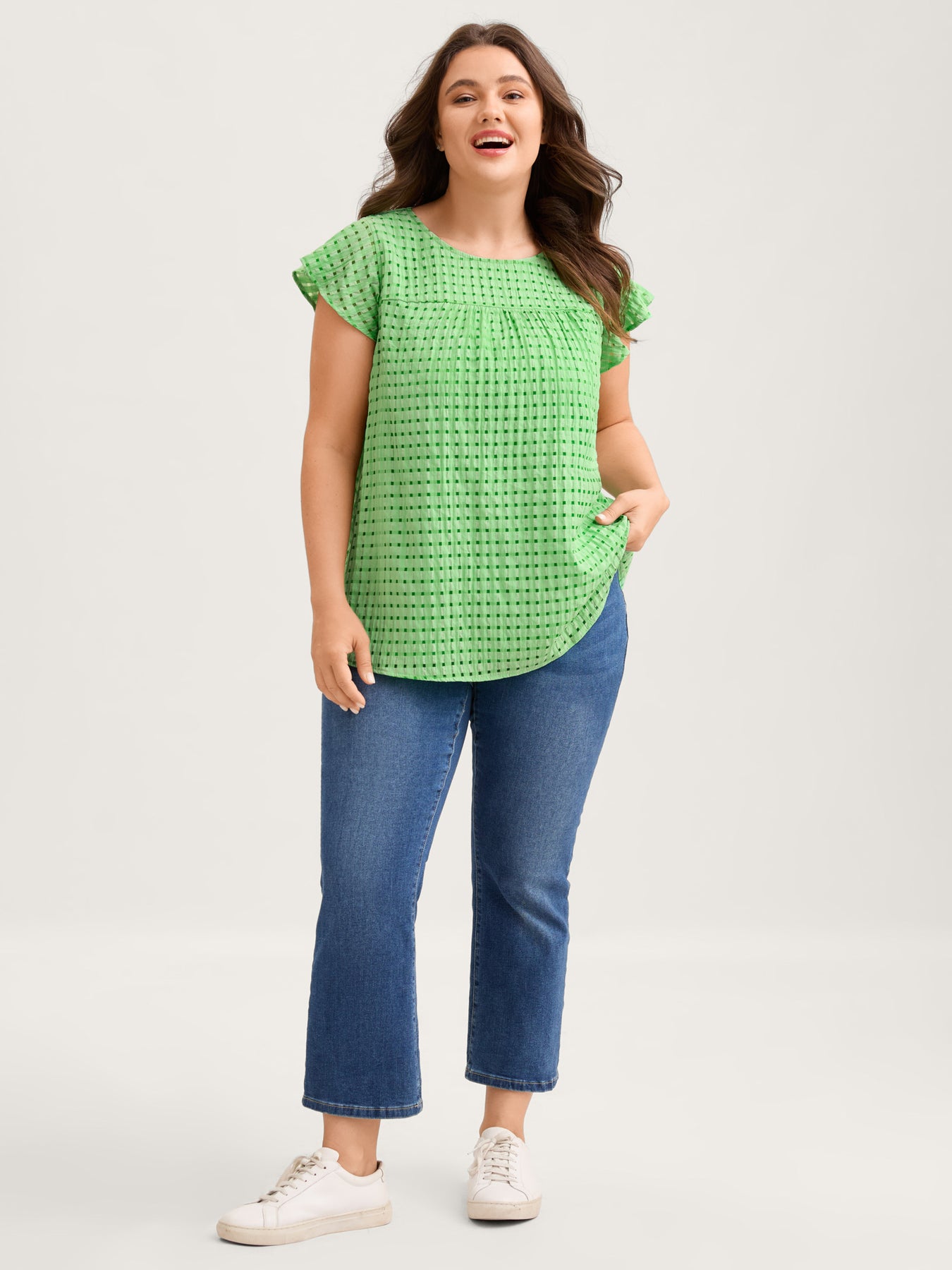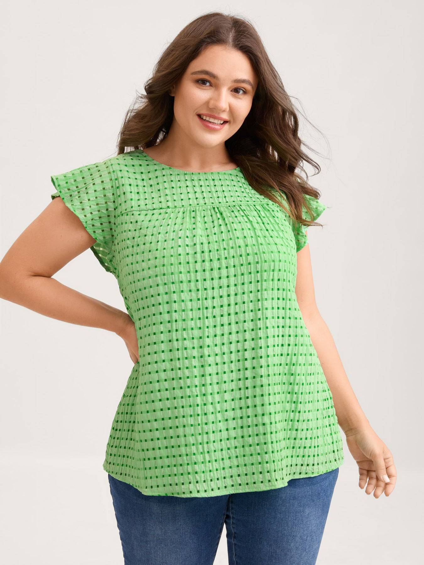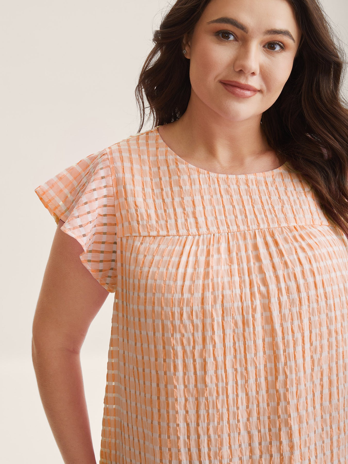 Textured Sheer Lined Flutter Sleeve Blouse