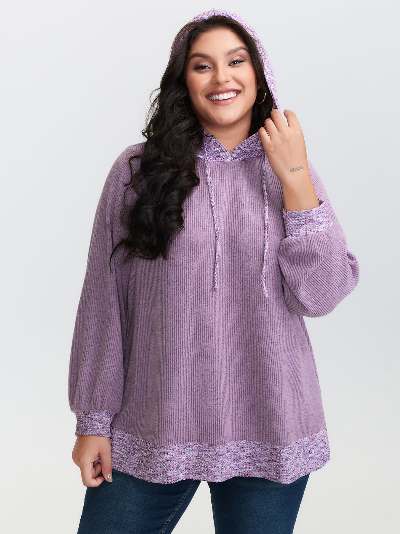 Textured Stretchy Color Contrast Hoodie