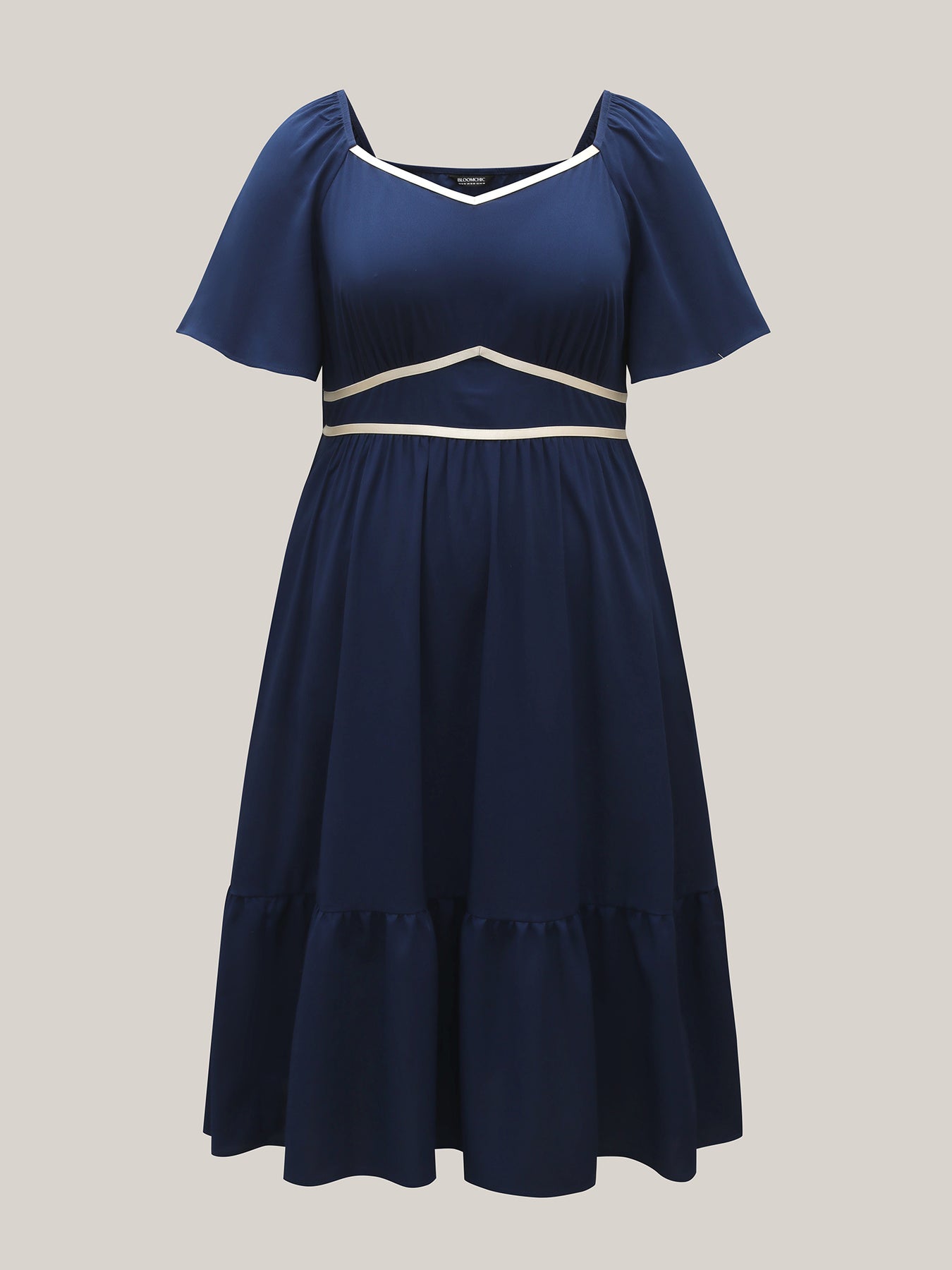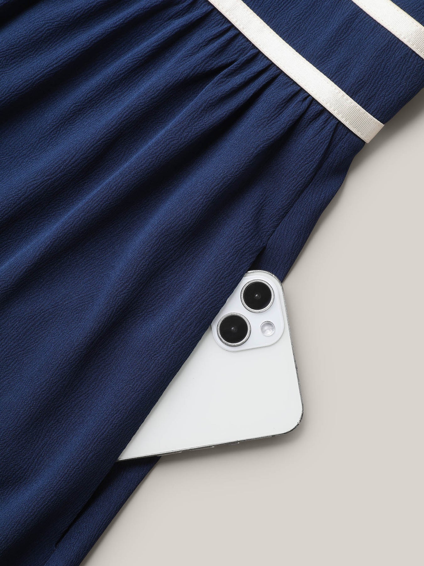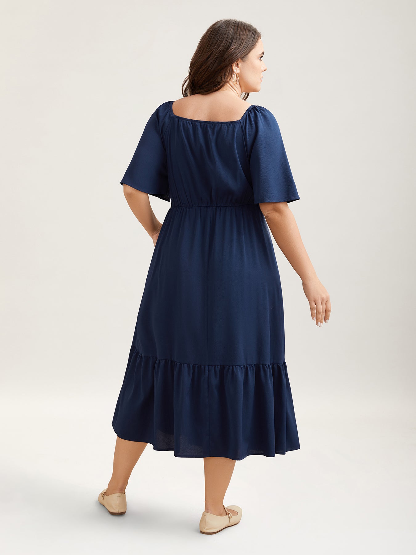 Textured Stretchy Waist Milkmaid Style Midi Dress