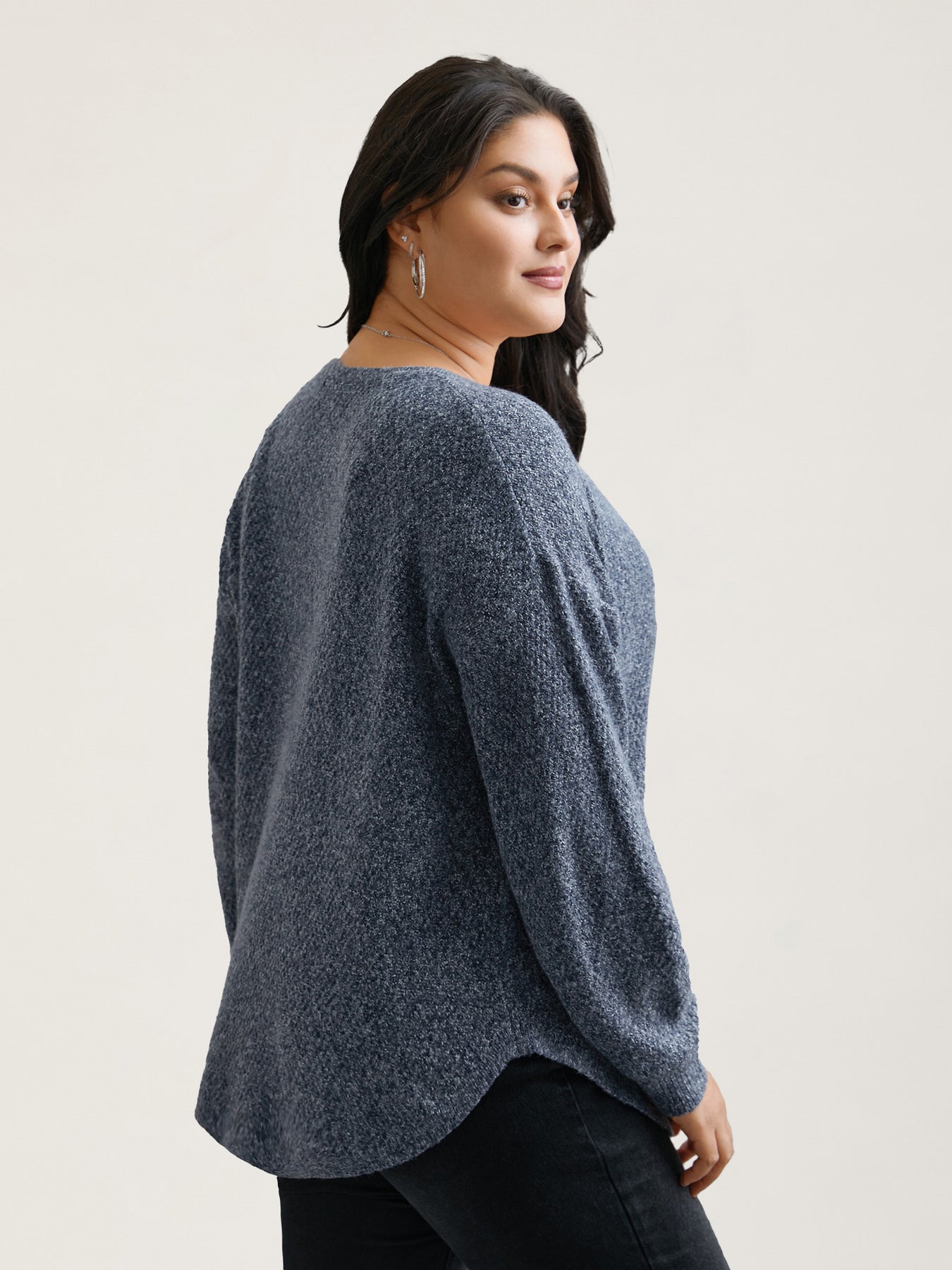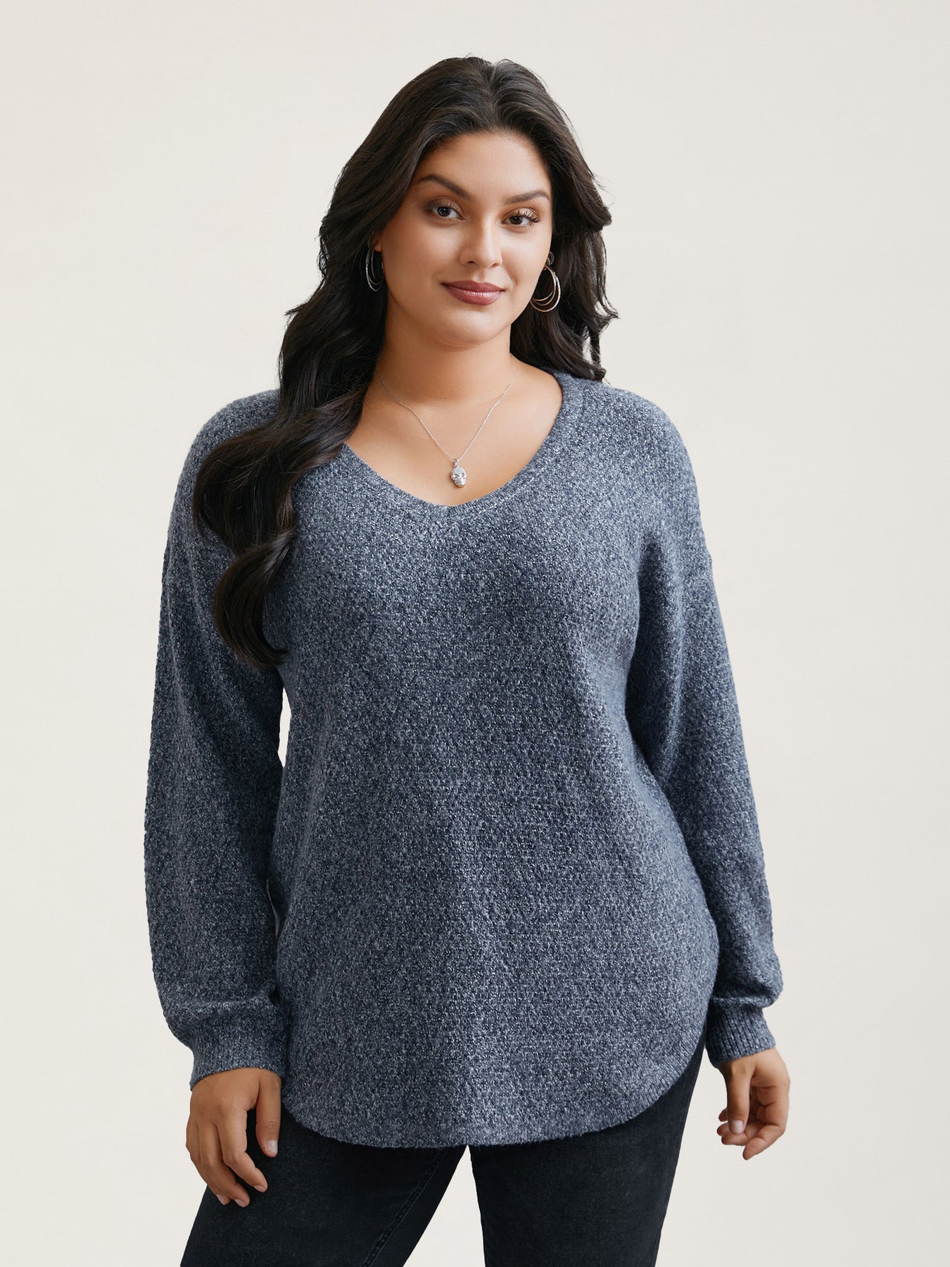 Textured V-Neck Curved Hem Pullover