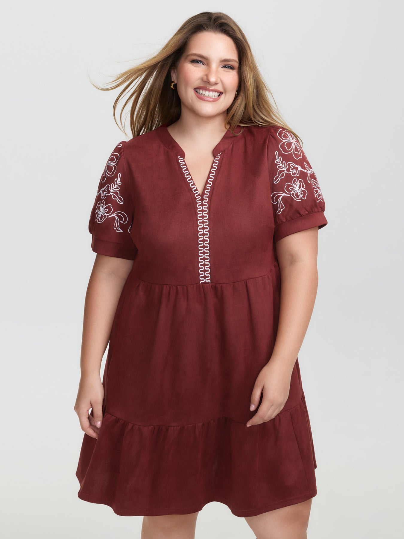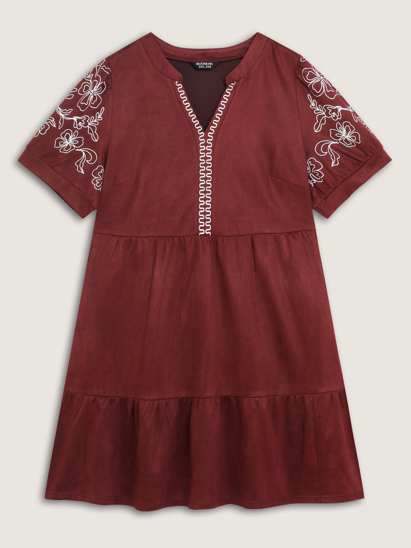 Thread Embroidery Tiered Pockets Mini Dress
